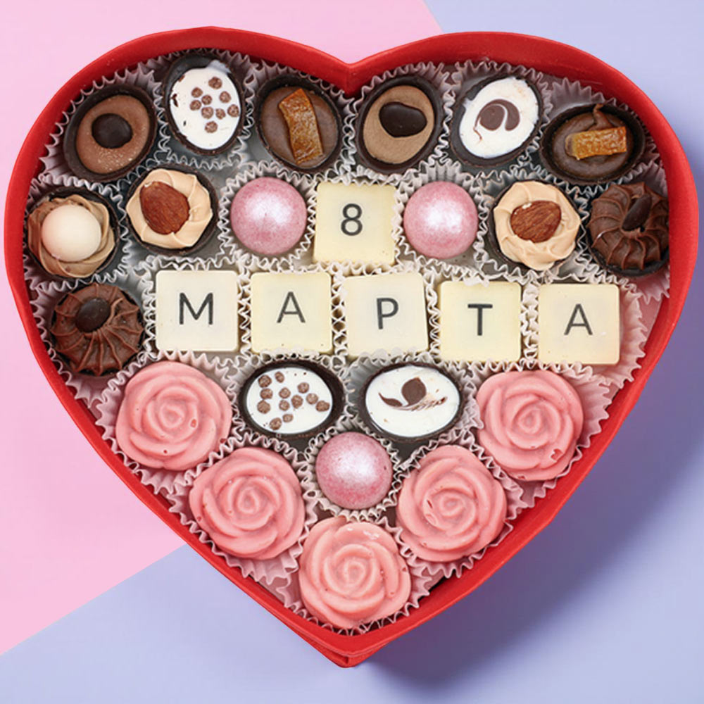 «8 марта» конфеты ручной работы 275г (сердце красное)