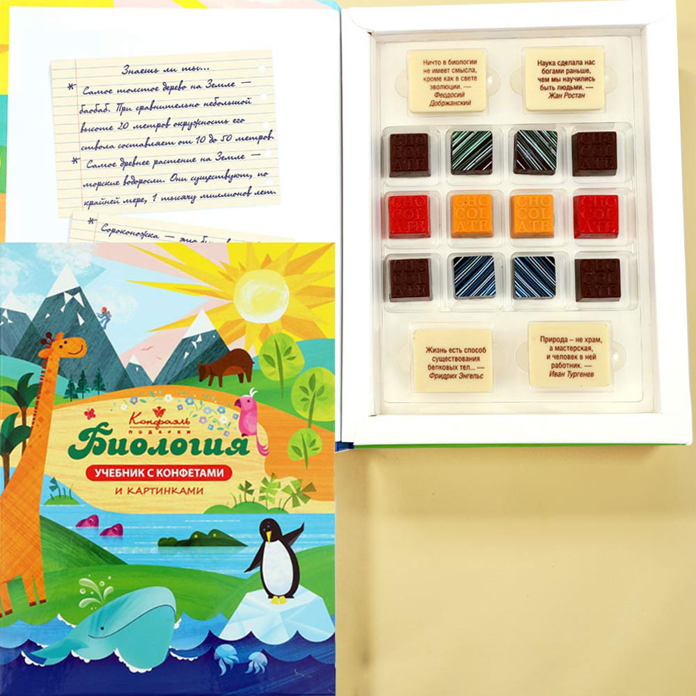 "Биология" учебник с шоколадом и конфетами