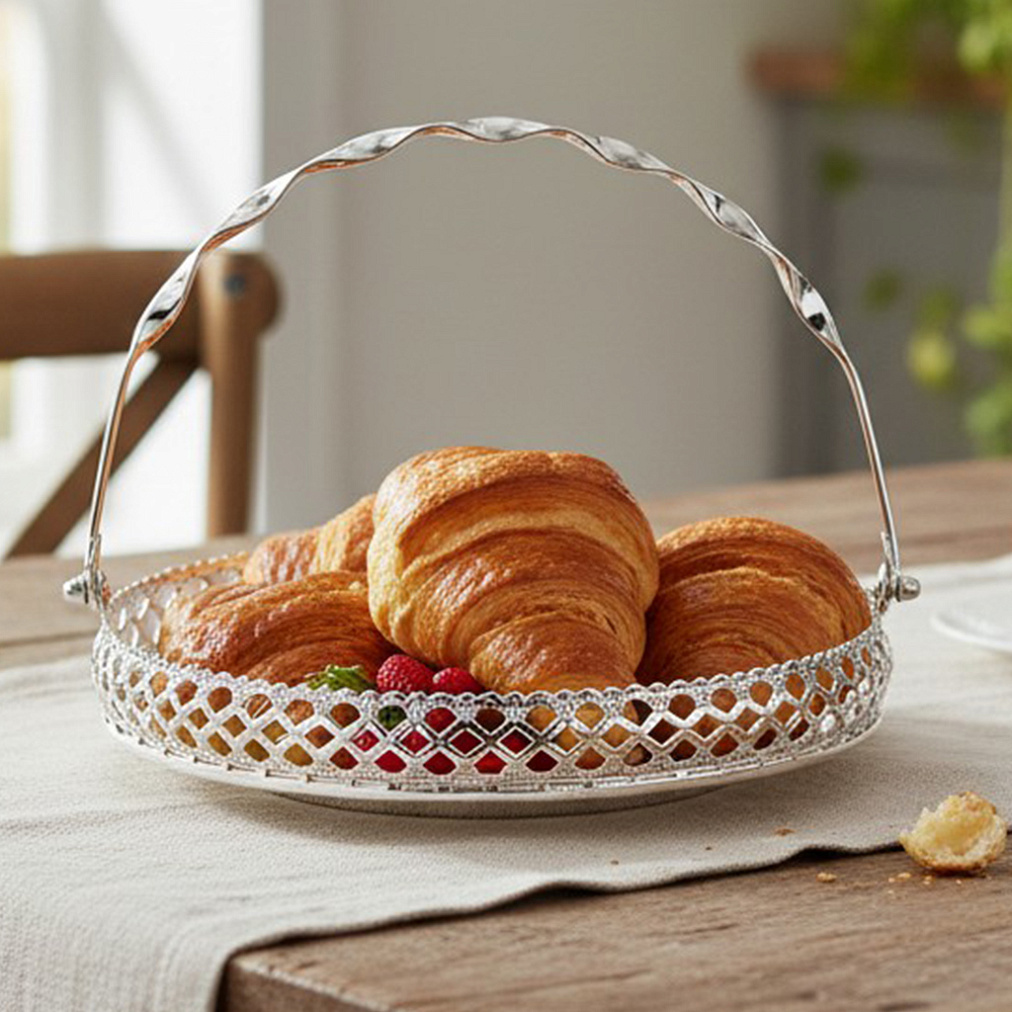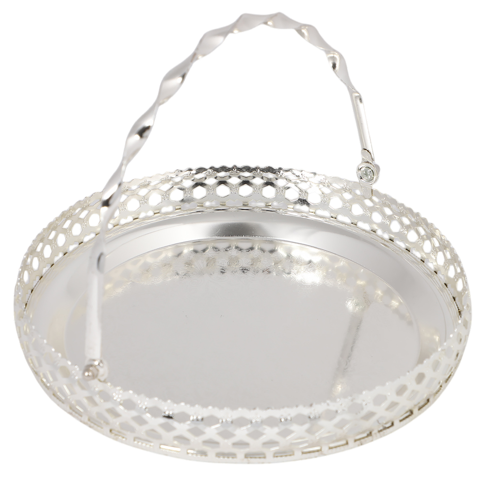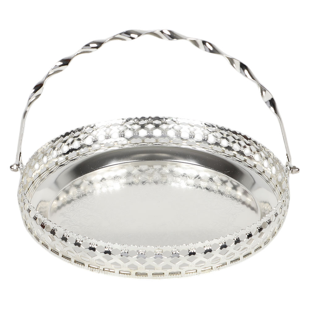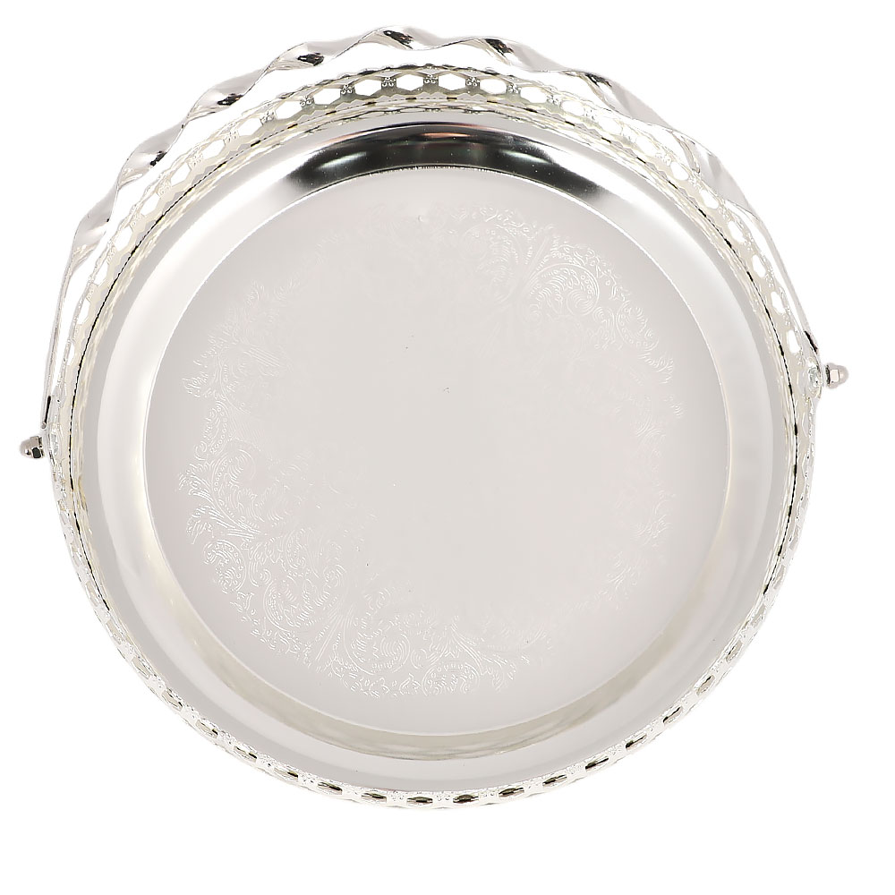 Блюдо круглое декоративное из металла (серебро)