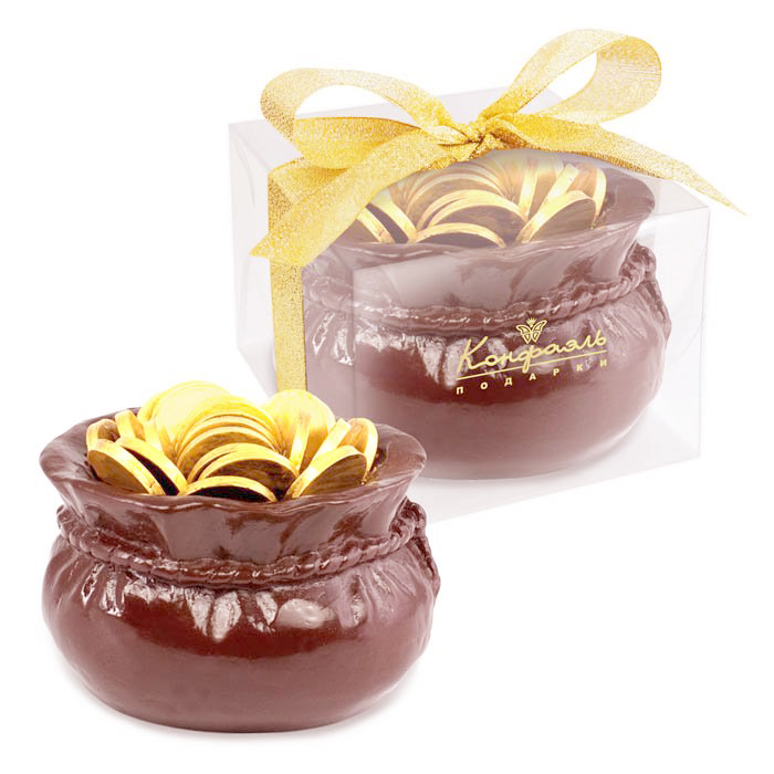 Вы сможете по-настоящему удивить своих близких или друзей и доставить им безмерное удовольствие, если купите в магазине «Конфаэль» маняще-соблазнительный мешок с деньгами из шоколада.