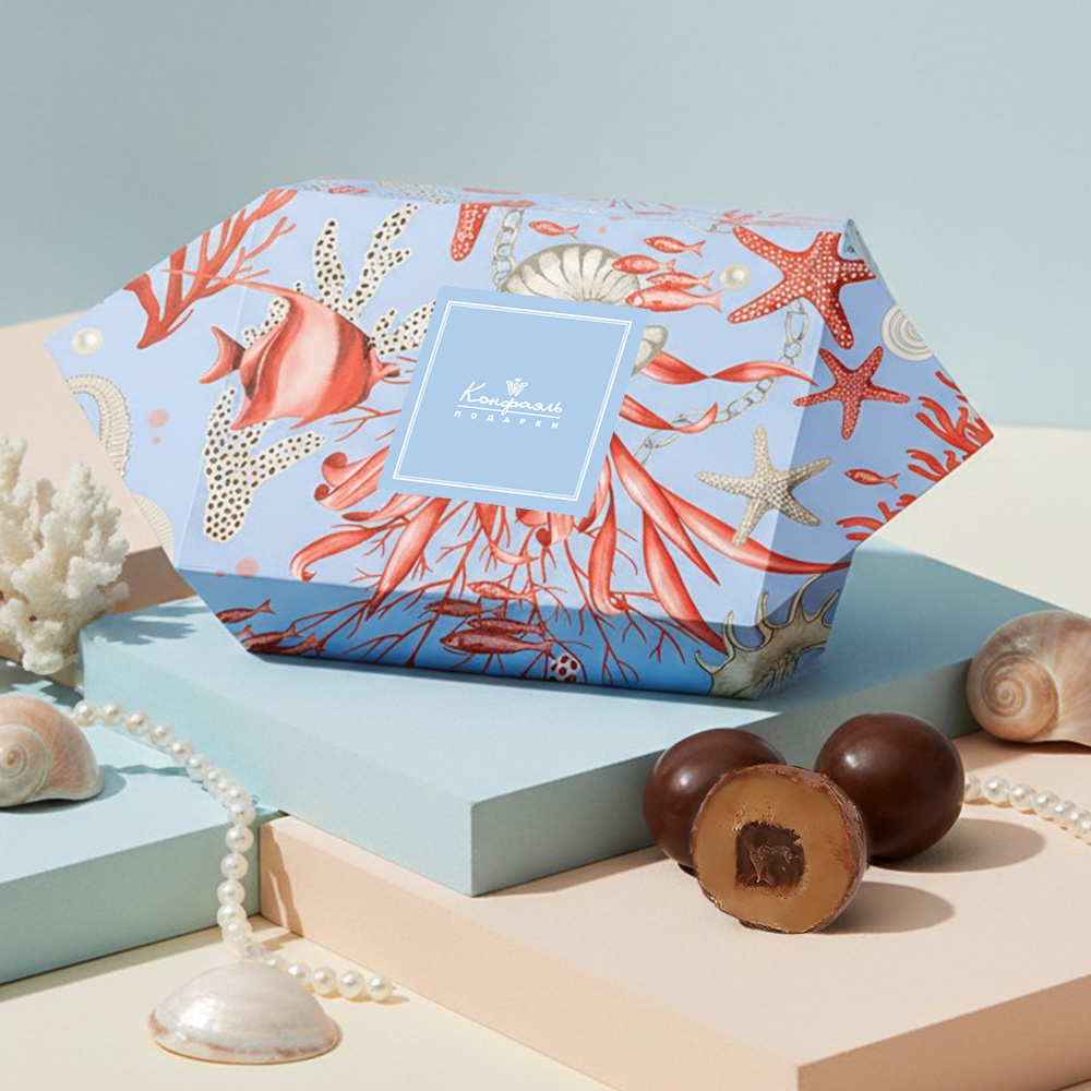 Роскошная упаковка. Элегантная коробка подчёркивает статусность подарка и сохраняет свежесть конфет.