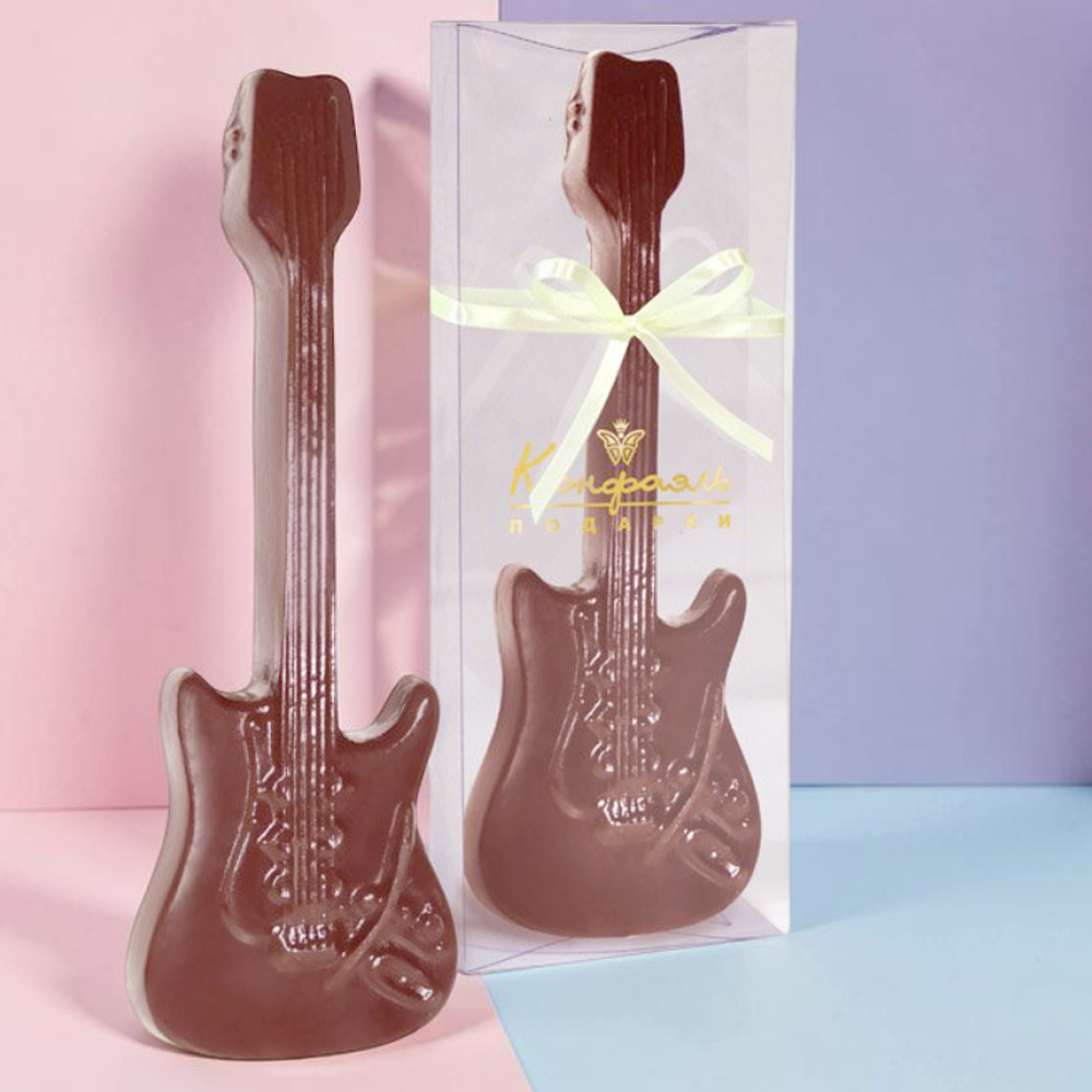 Шоколадная скульптура «Гитара» в прозрачной упаковке - эффектный вариант подарка к любому празднику.