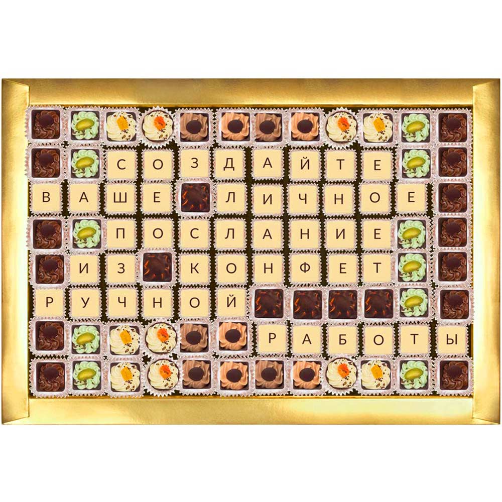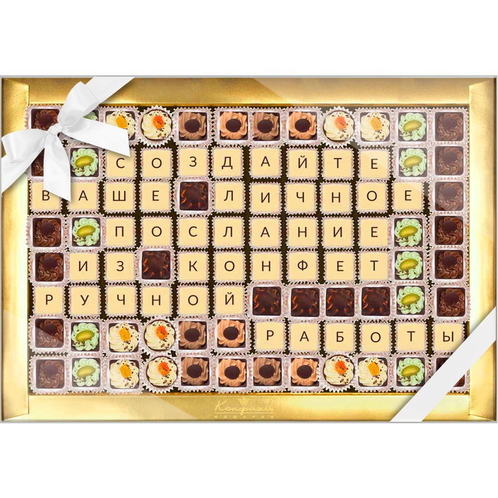 Шокотелеграмма из 96 конфет – это прекрасная возможность поздравить дорогого человека оригинальным способом: шоколадными словами.