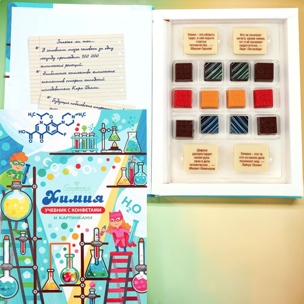 "Химия" учебник с шоколадом и конфетами