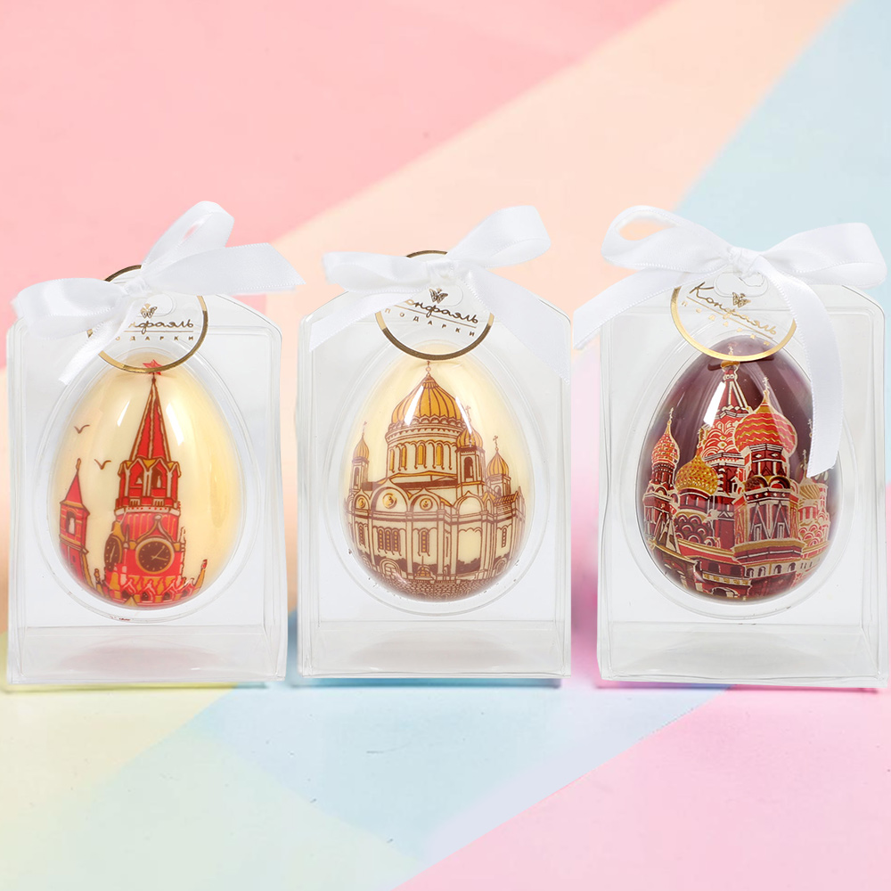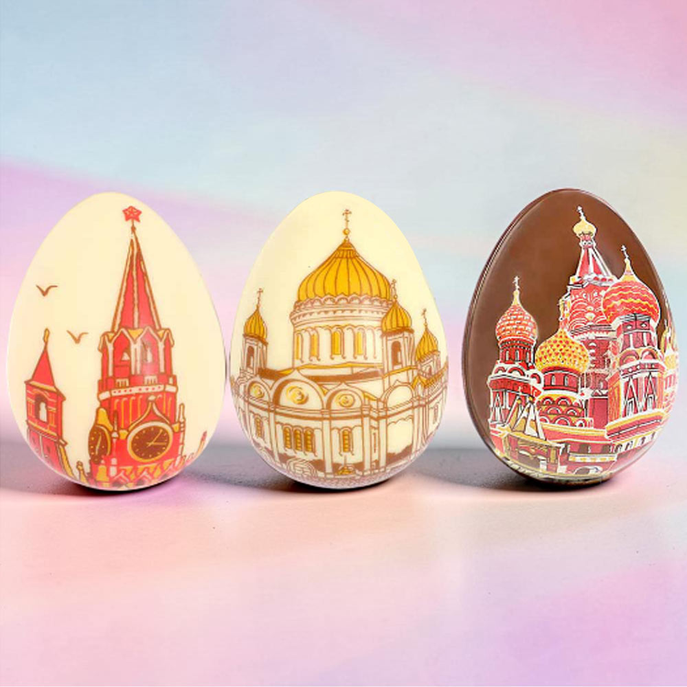 "Храм, Кремль, Собор" набор 3 яйца белый и молочный шоколад