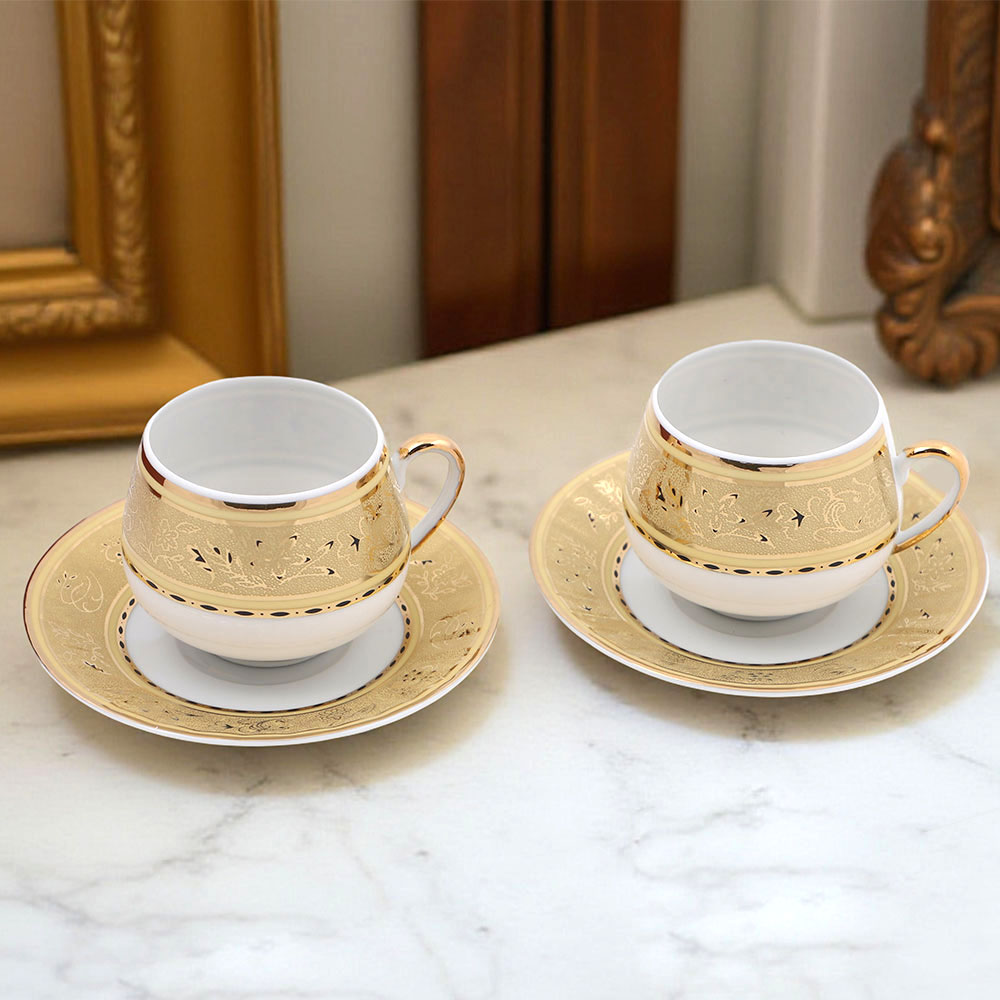 Идеальная комплектация: всё необходимое для двоих — 2 чашки и 2 блюдца. Достаточно для романтического завтрака или дружеской беседы за чашечкой ароматного напитка.