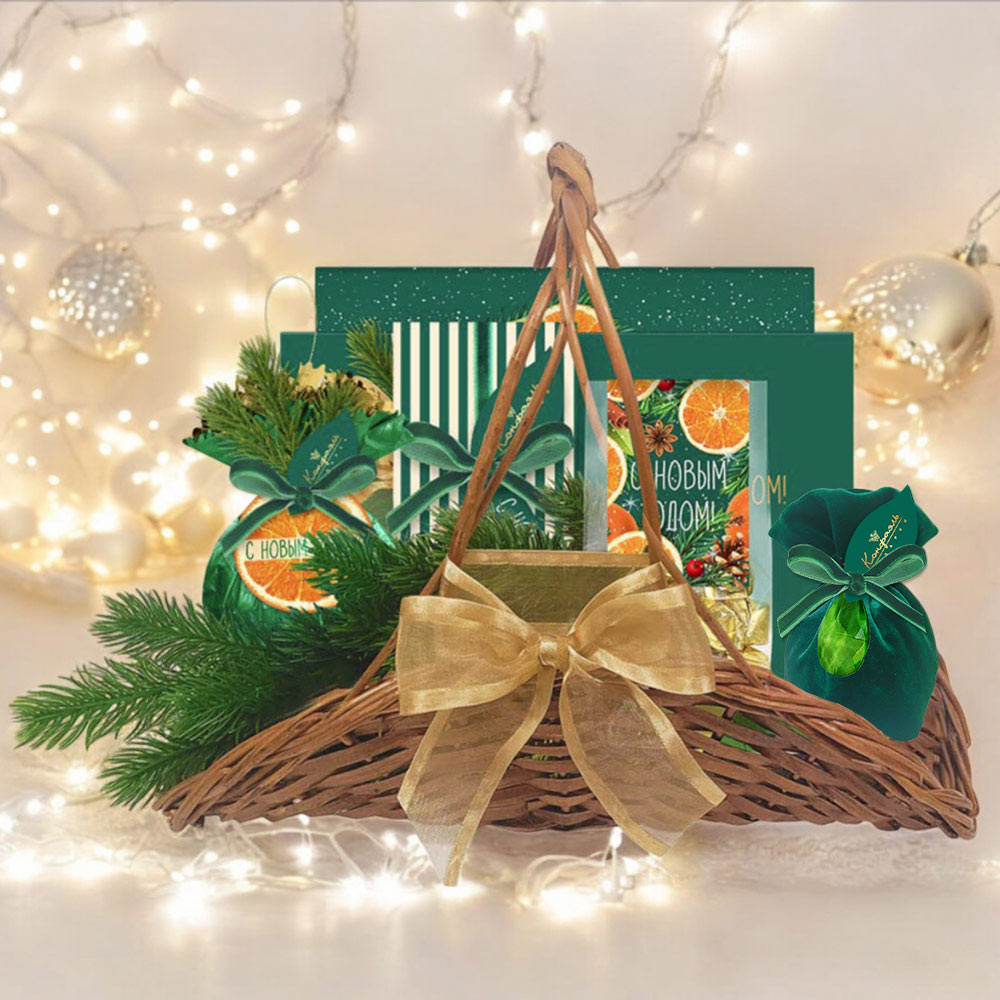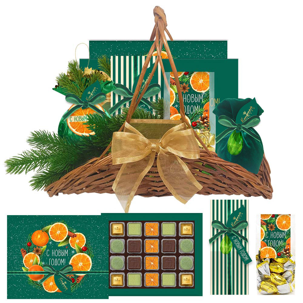 "Новогодняя корзина" набор: шоколад, мармелад, драже, конфеты шоколадные 965г