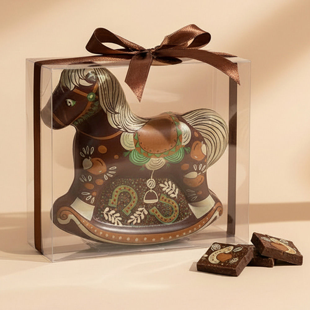 Ищете оригинальный подарок на Новый год? Представляем Вашему вниманию изысканную шоколадную скульптуру «Лошадка» — идеальный выбор для тех, кто хочет порадовать близких необычным и вкусным презентом!