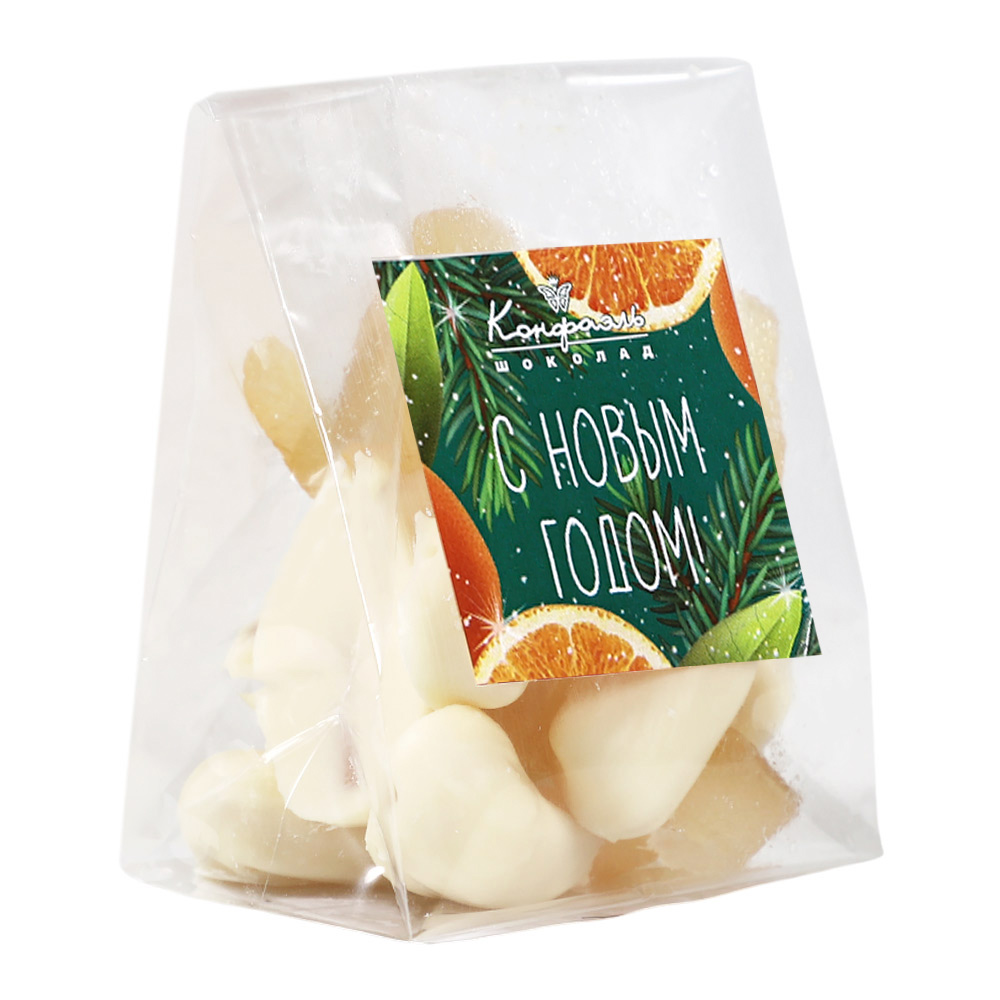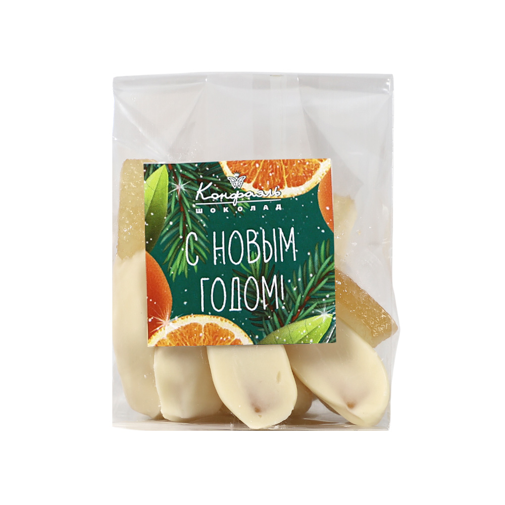 «Любимый вкус» цукаты лимонные корочки в белом шоколаде 50г (зеленое новогоднее оформление)