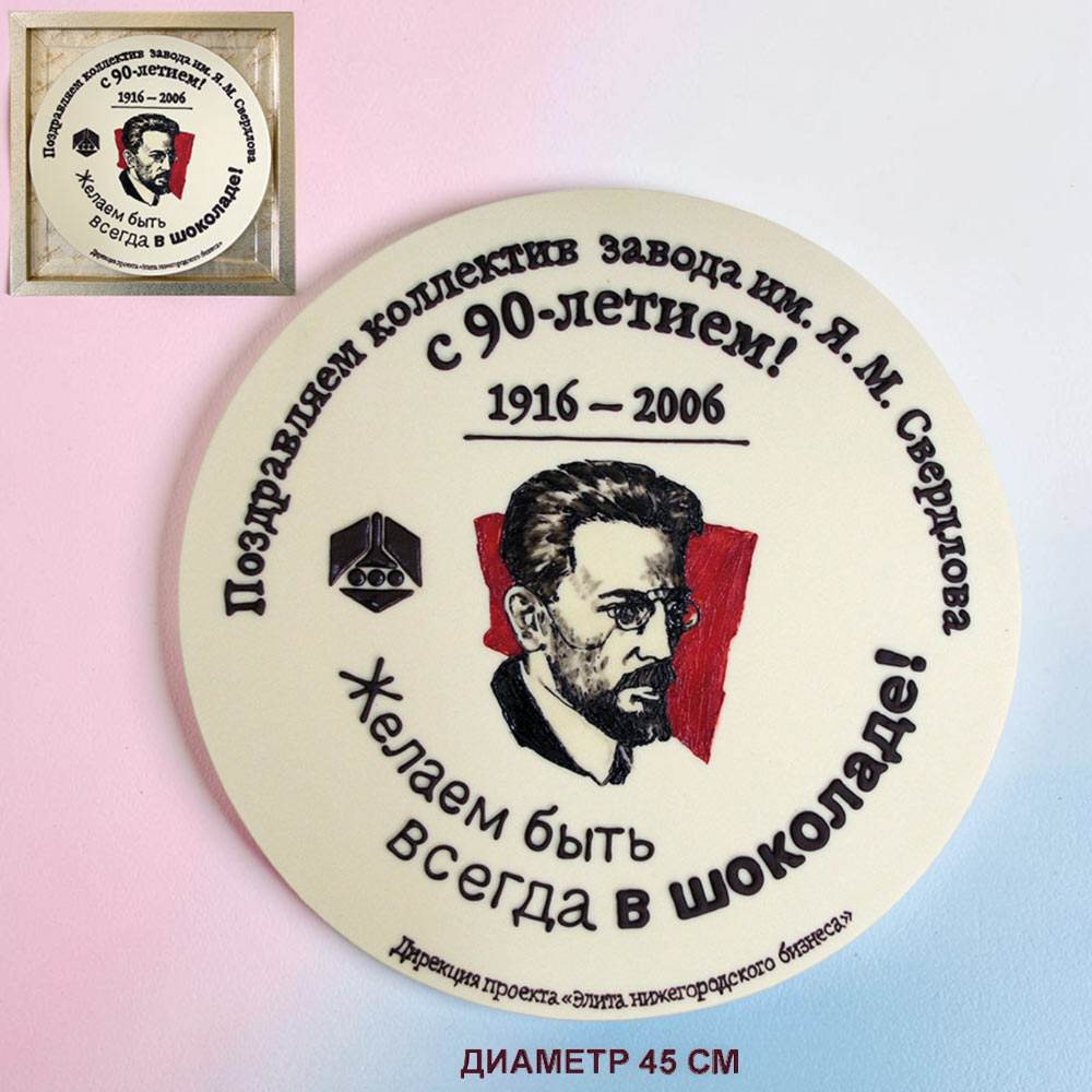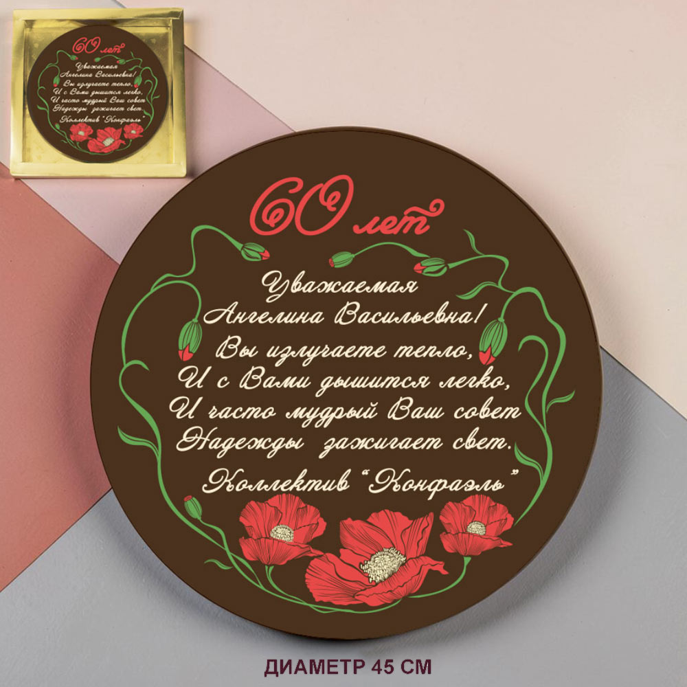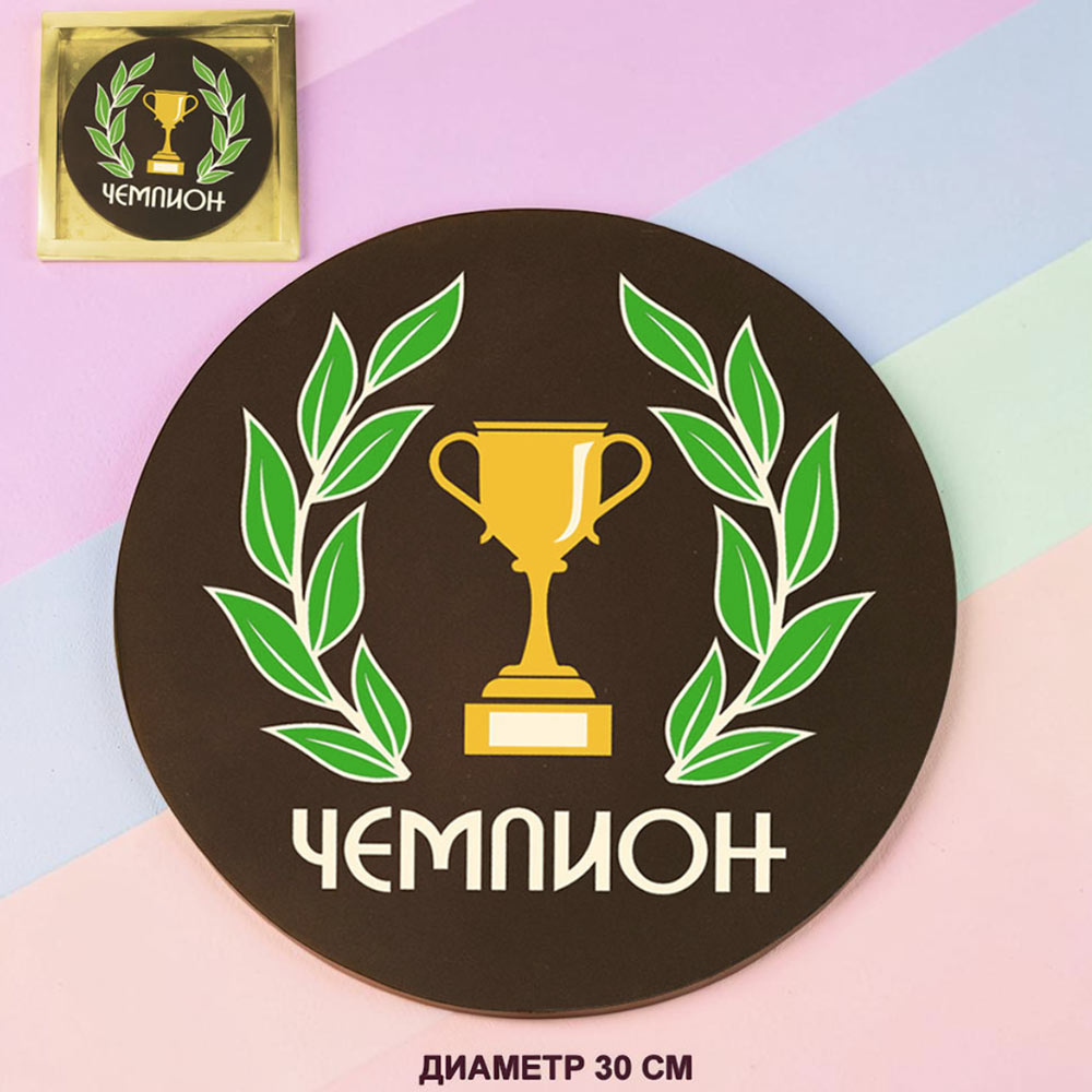 "Ваша надпись" индивидуальная медаль из шоколада в ассортименте - "Ваш текст-поздравление" медаль белый шоколад 30 см
