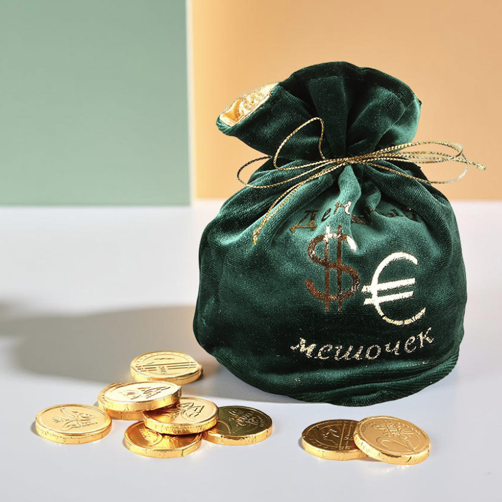 Красивый зелёный мешочек с вкусными монетками из шоколада - это возможность креативно выразить свои чувства и передать наилучшие пожелания близким и друзьям!
