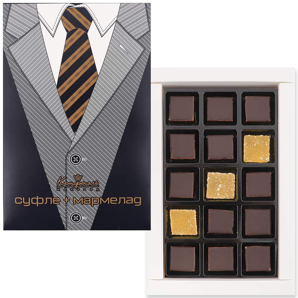 Мармелад желейный "Апельсиновый", конфеты глазированные горьким шоколадом "Суфле" (ванильное)