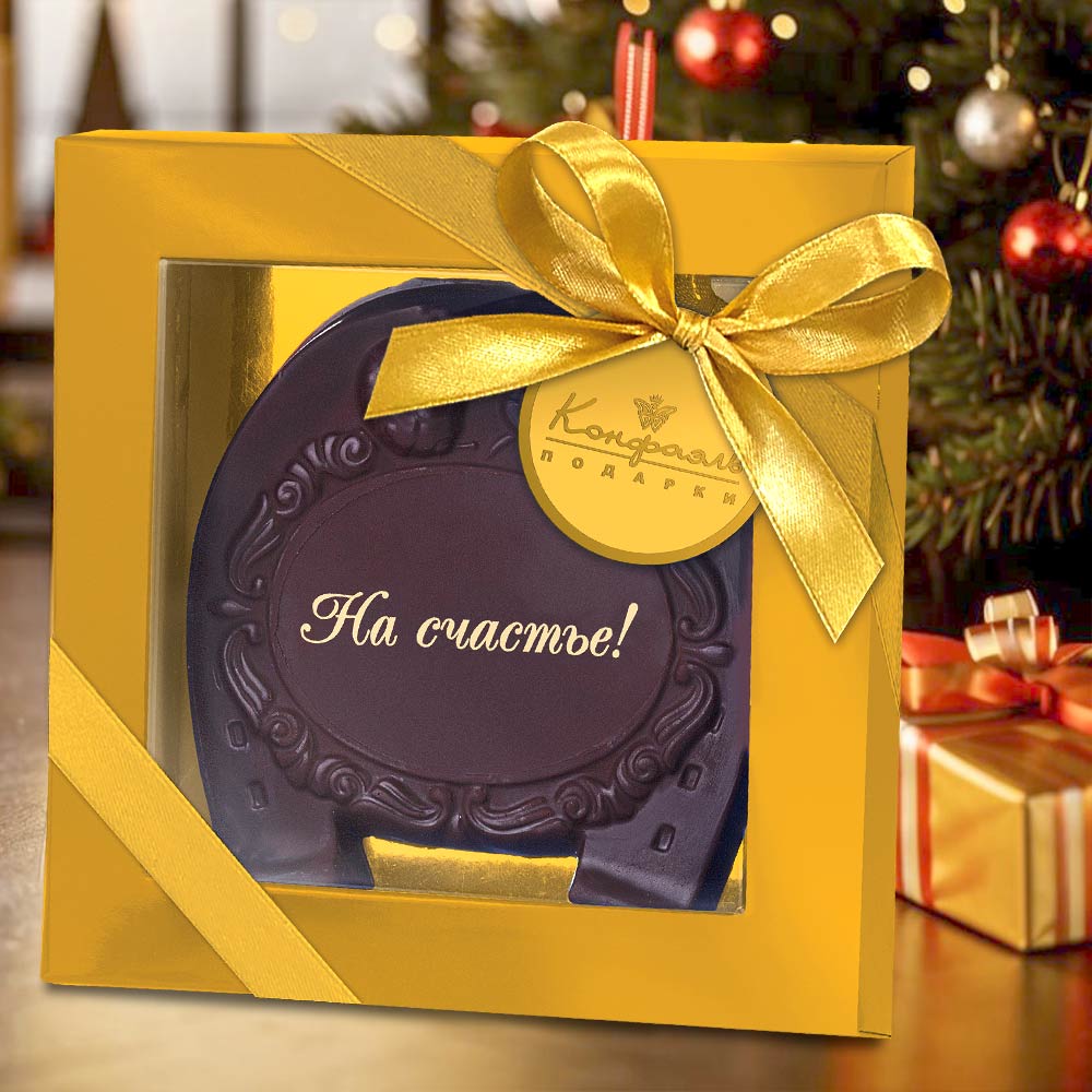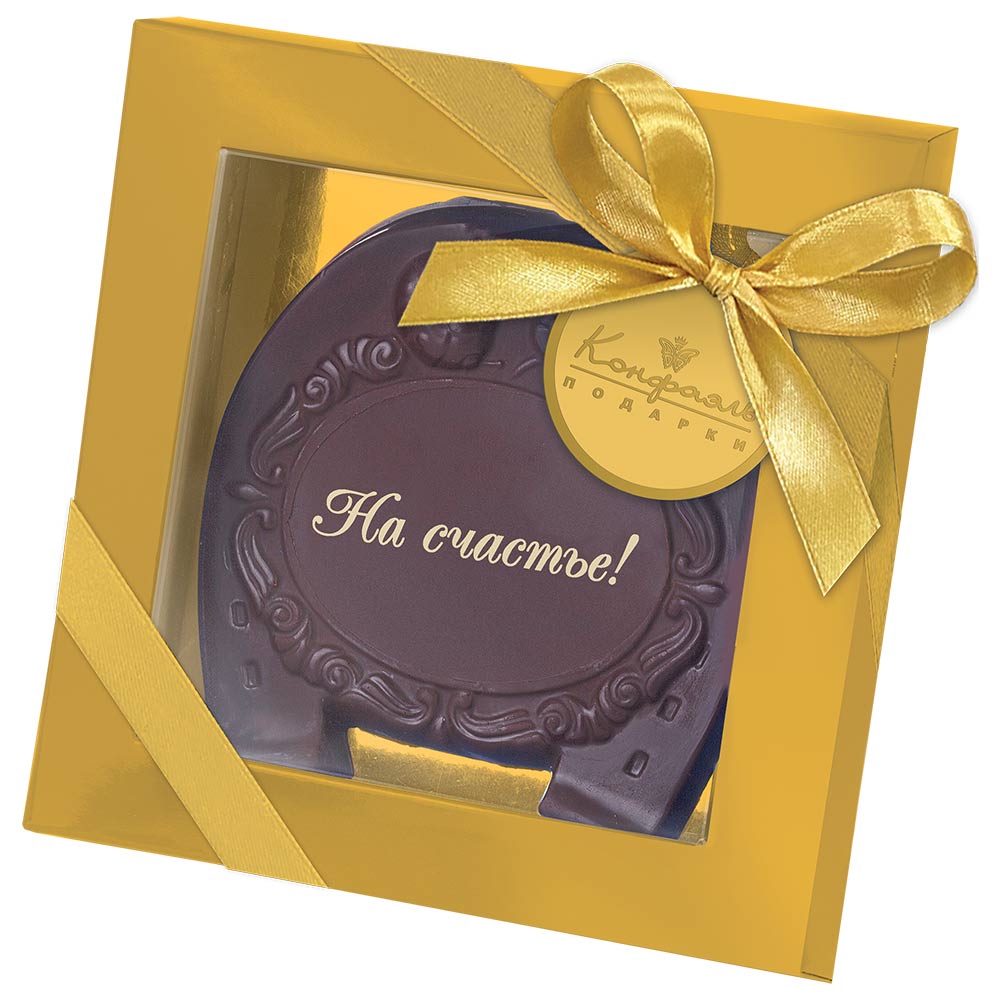 Состав: сахар, масло какао, сыворотка молочная сухая, тертое какао, пахта сухая, эмульгатор (лецитин соевый); декор – пищевые красители (кандурин золотой).