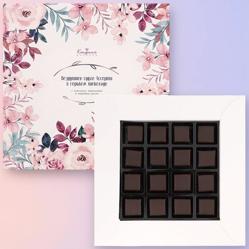 Конфеты глазированные горьким шоколадом "Суфле" (ванильное, кофейное, шоколадное)