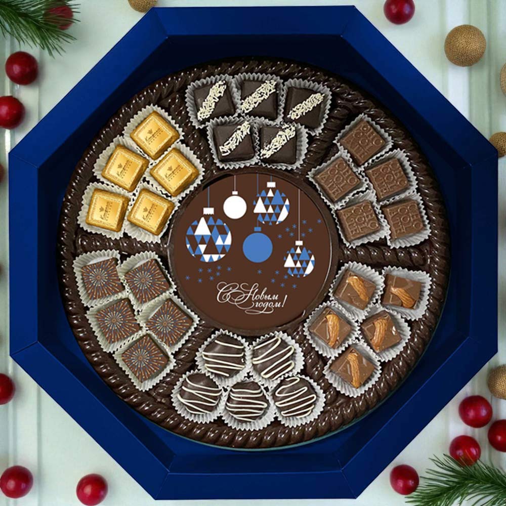 Шоколад молочный с декором, шоколад молочный с миндалем, шоколадные конфеты «Ассорти» с кремовой и сливочной начинками, с кремовой начинкой и декором, конфеты «Мягкий грильяж» в горьком шоколаде, конфеты «Желейные» в горьком шоколаде (апельсиновые)