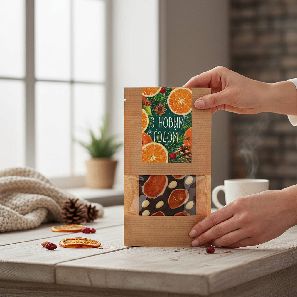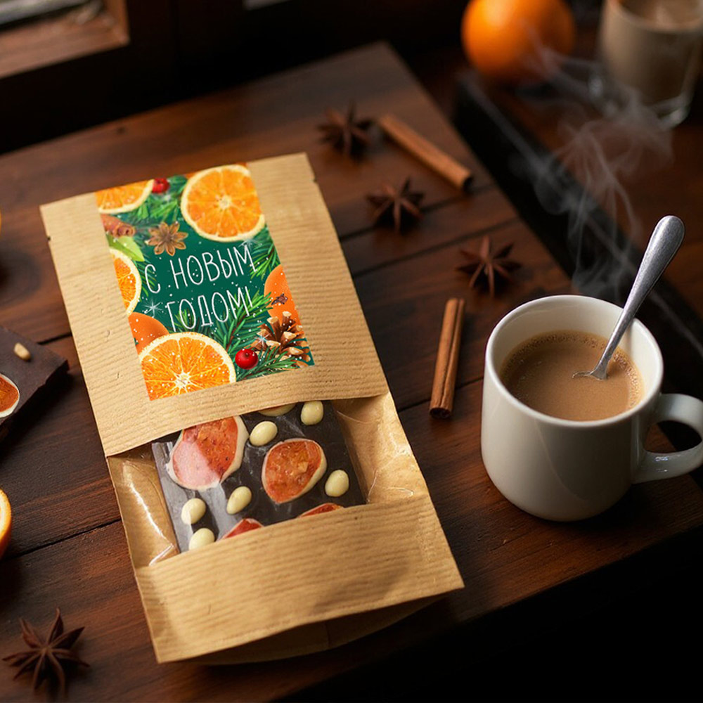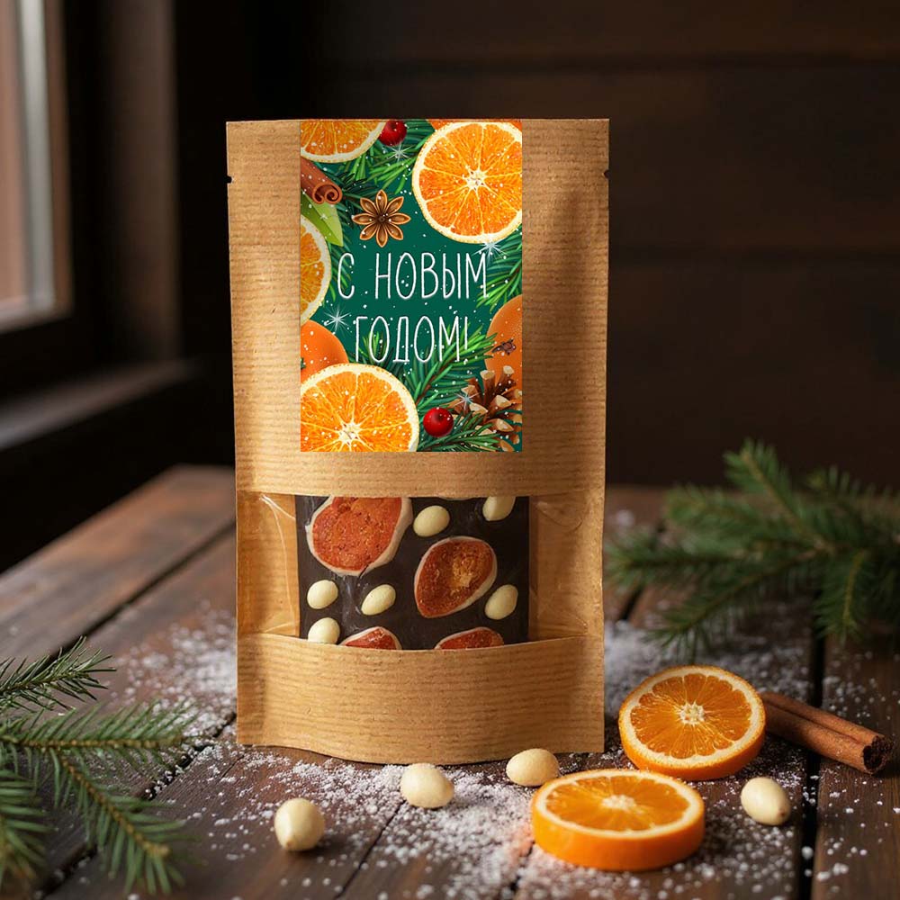 Новогодний набор шоколад горький с кумкватом и драже «кедр» в белом шоколаде 75г