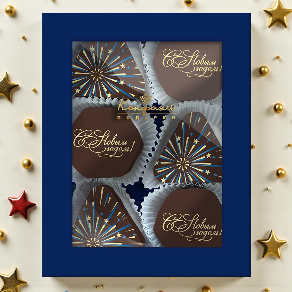 Состав: шоколадная масса – сахар, какао тертое, масло какао, какао-порошок, эмульгаторы (соевый лецитин, Е476); начинки – сахар, патока, молоко сгущенное (молоко цельное, сахар (сахароза, лактоза)), масло сладко-сливочное, белок яичный, желирующий агент (агар), регулятор кислотности (кислота лимонная), консервант (сорбиновая кислота), эмульгатор (Е471), кофе натуральный молотый, экстракт ванили, пищевой краситель (сахарный колер) ; декор – пищевые красители (Е132, Е172, Е171, куркумин, красный свекольный, медные комплексы хлорофиллов и хлорофиллинов). Продукция производится на предприятии, где используются арахис, кунжут, орехи, яичные и молочные продукты, злаки, содержащие глютен.