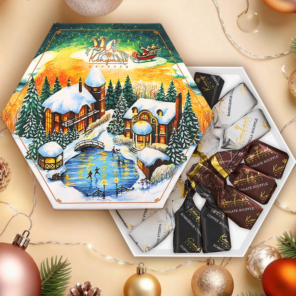 Новогодний набор суфле в шоколаде (ванильное, шоколадное, кофейное) 105г (деревня)