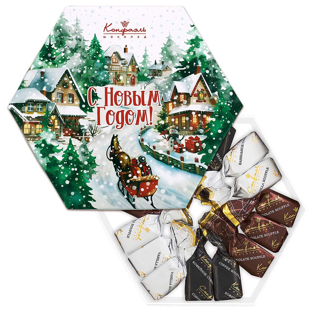 Новогодний набор суфле в шоколаде (ванильное, шоколадное, кофейное) 105г (пейзаж)
