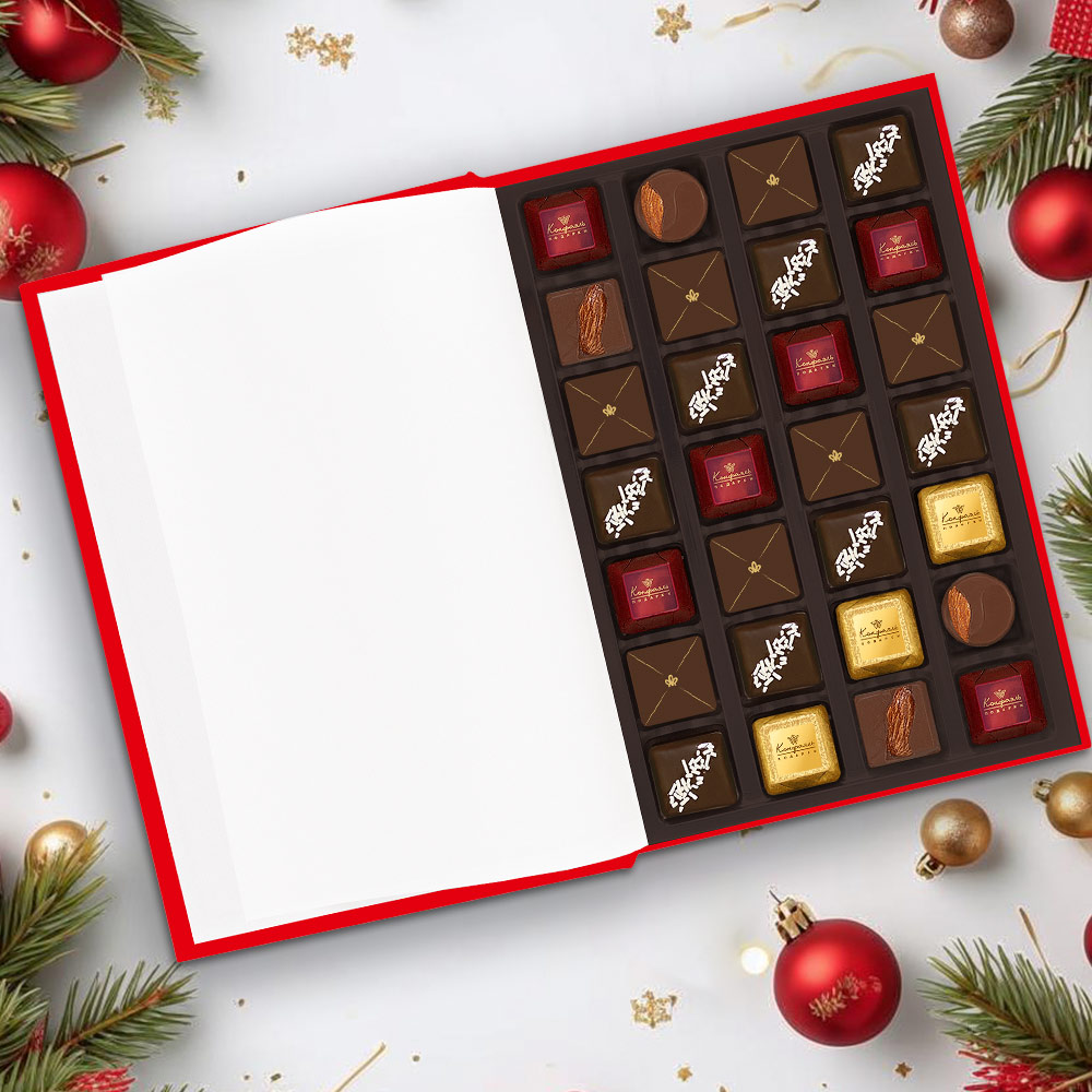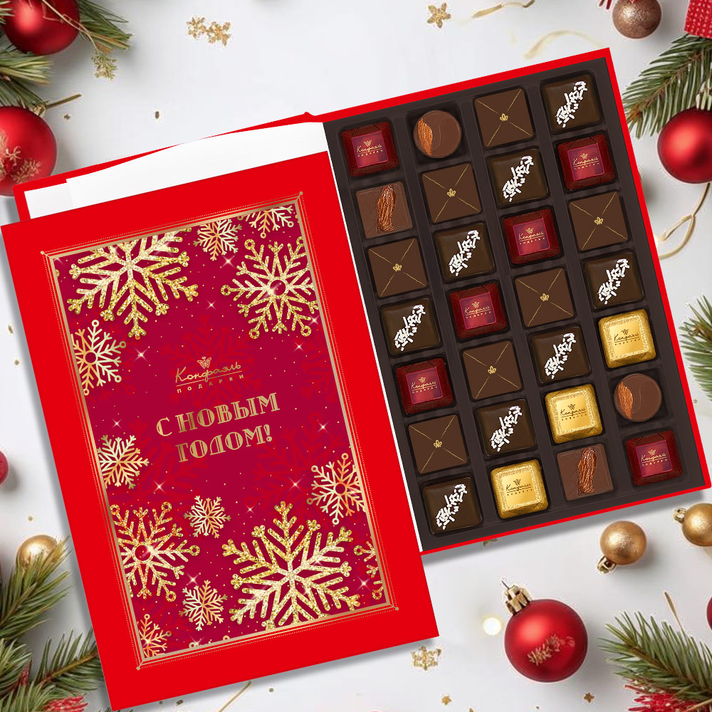 Состав: шоколадные массы - сахар, тертое какао, какао-порошок, масло какао, сыворотка молочная сухая, сухое цельное молоко, молочный жир, паста ореховая из ядер фундука, эмульгаторы (лецитин соевый, Е476), соль, ароматизатор; начинки - сахар, патока крахмальная карамельная, масло какао, тертое какао, молоко сгущенное (молоко цельное, сахар (сахароза, лактоза)), молоко сухое цельное, молоко сухое обезжиренное, масла растительные рафинированные дезодорированные (подсолнечное, рапсовое, оливковое; масло сливочное, молоко сухое обезжиренное), жир специального назначения (масло ши, рапсовое масло, соевое масло), белок яичный, кумкват, клубника сушеная, цукаты лимонных корочек, папайя сушеная, ананас сушеный, финики, чернослив, абрикос сушеный, ядра орехов фундука, ядра орехов миндаля, стабилизатор (мальтодекстрин), желирующий агент (агар), коньяк (дистиллят коньячный, вода, сахар, пищевой краситель «Сахарный колер»), спирт этиловый ректификованный, консервант (сорбиновая кислота), регулятор кислотности (лимонная кислота), эмульгаторы (лецитин соевый, Е471), ароматизаторы, пищевые красители «Сахарный колер»; декор - пищевые красители (Е171, «Куркумин»). Внимание! В продукте возможно наличие фрагментов фруктовых косточек абрикоса натурального, фиников натуральных, чернослива натурального. Продукция производится на предприятии, где используются арахис, кунжут, орехи, яичные и молочные продукты, злаки, содержащие глютен.