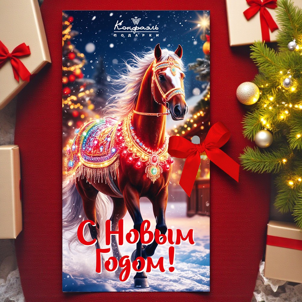 Открытка-шоколад «Новогодняя лошадь»: согрей сердца близких сладким сюрпризом!