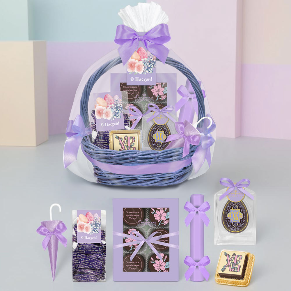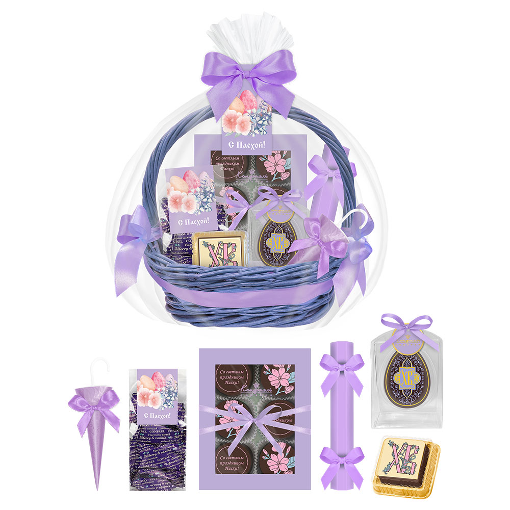 Пасхальная корзина с шоколадом и конфетами 445г
