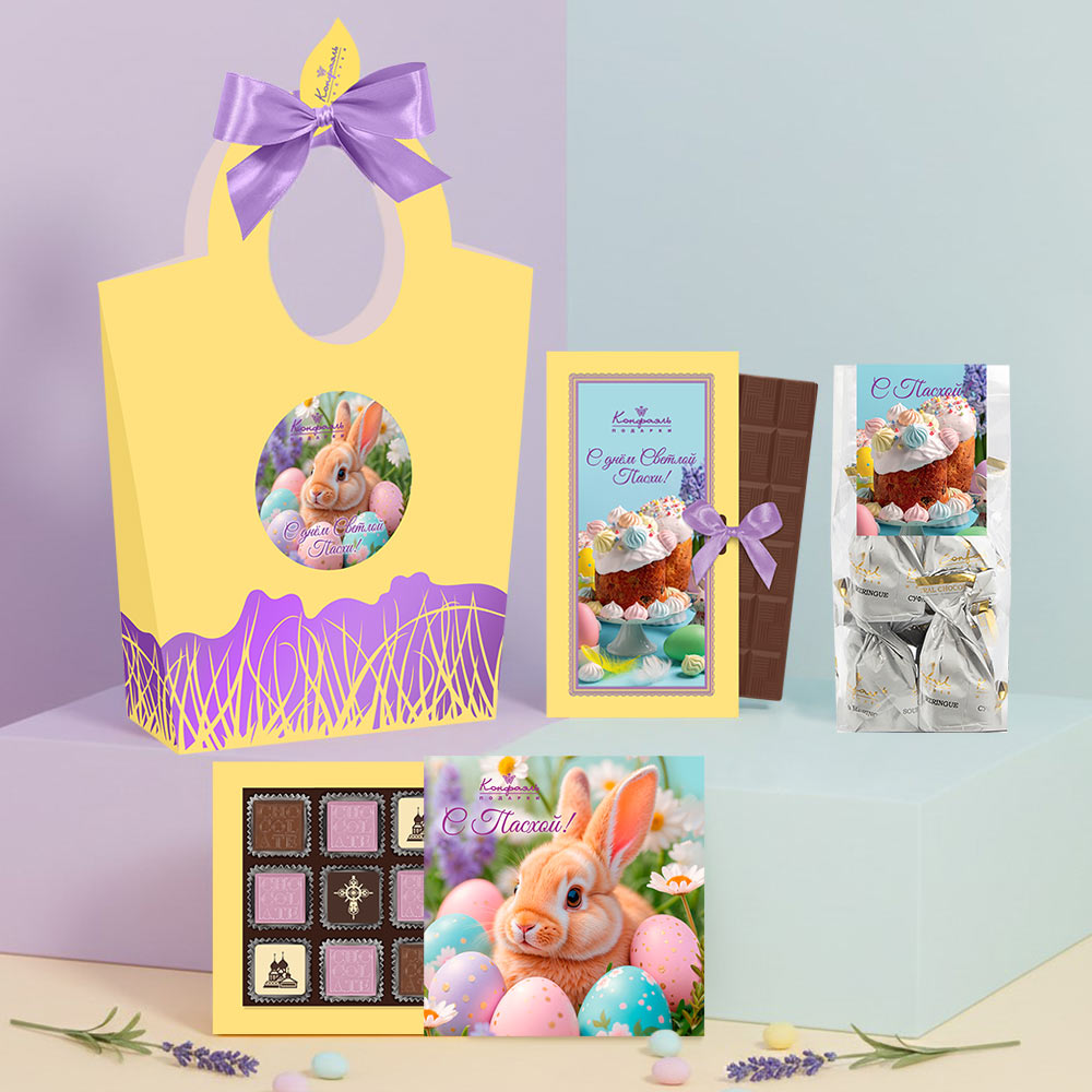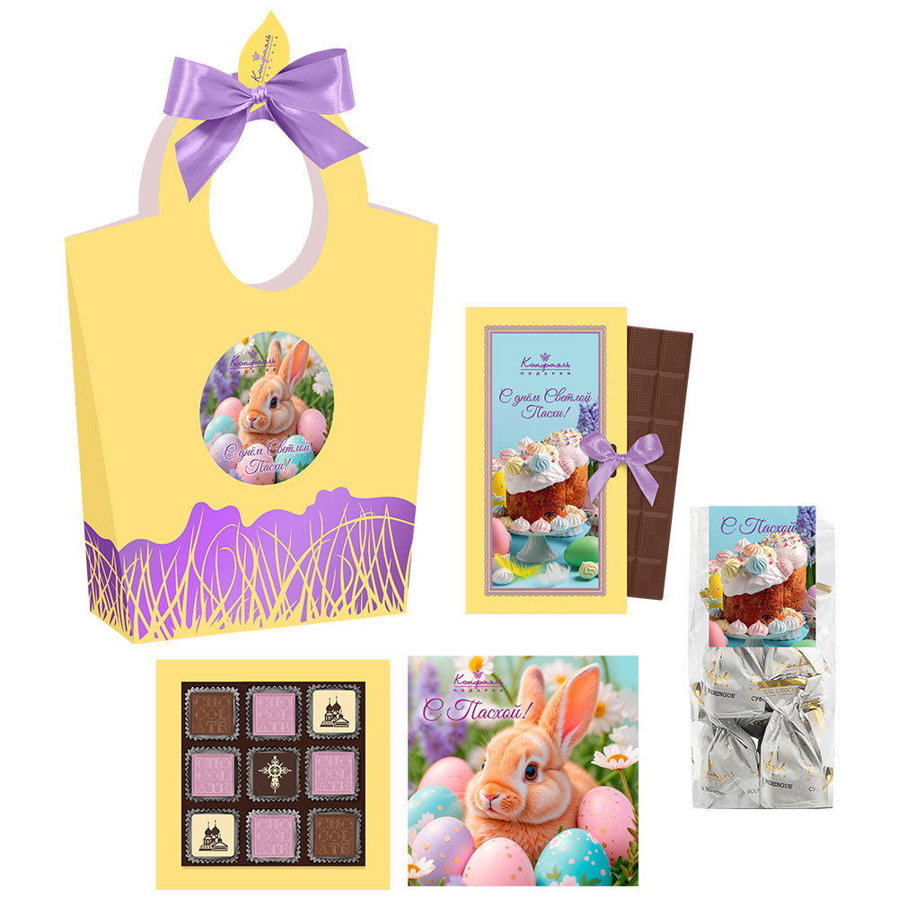 Пасхальная сумочка: шоколад, конфеты глазированные, шоколадные конфеты