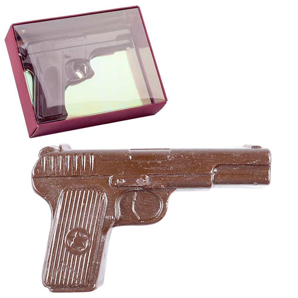 Пистолет, с ювелирной точностью выполненный из молочного шоколада, порадует своего владельца не только достоверным внешним видом, но и незабываемым вкусом.
