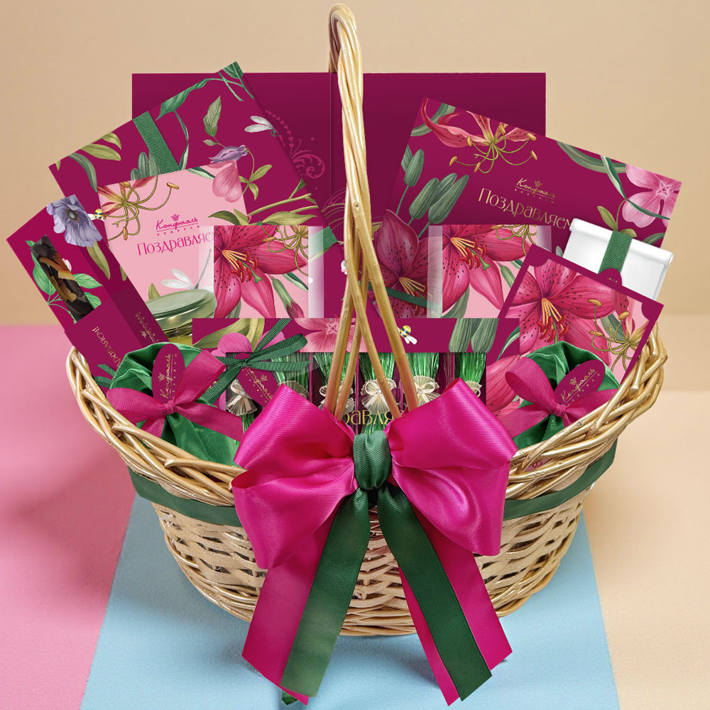 Поздравление 36/ Шоколадные конфеты «Ассорти» со сливочными и кремовой начинками, с кремовой начинкой и декором, конфеты «Желейные» в горьком шоколаде с декором (вишневые, яблочные), мармелад желейный «Апельсиновый» с декором/ 360г