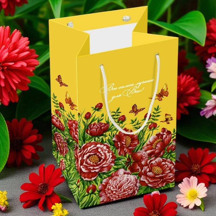 Пакет желтый с пионами 30*18*16,5см