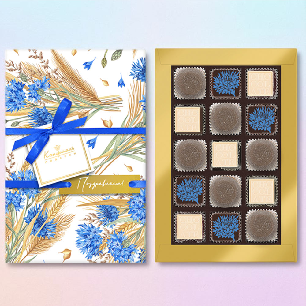 Шоколадные конфеты «Ассорти» со сливочной начинкой, с кремовой начинкой и декором, мармелад желейный со вкусом «Кофе»