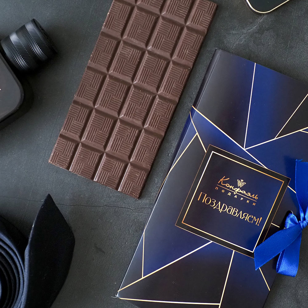 «Поздравляем» открытка шоколад горький (синий)