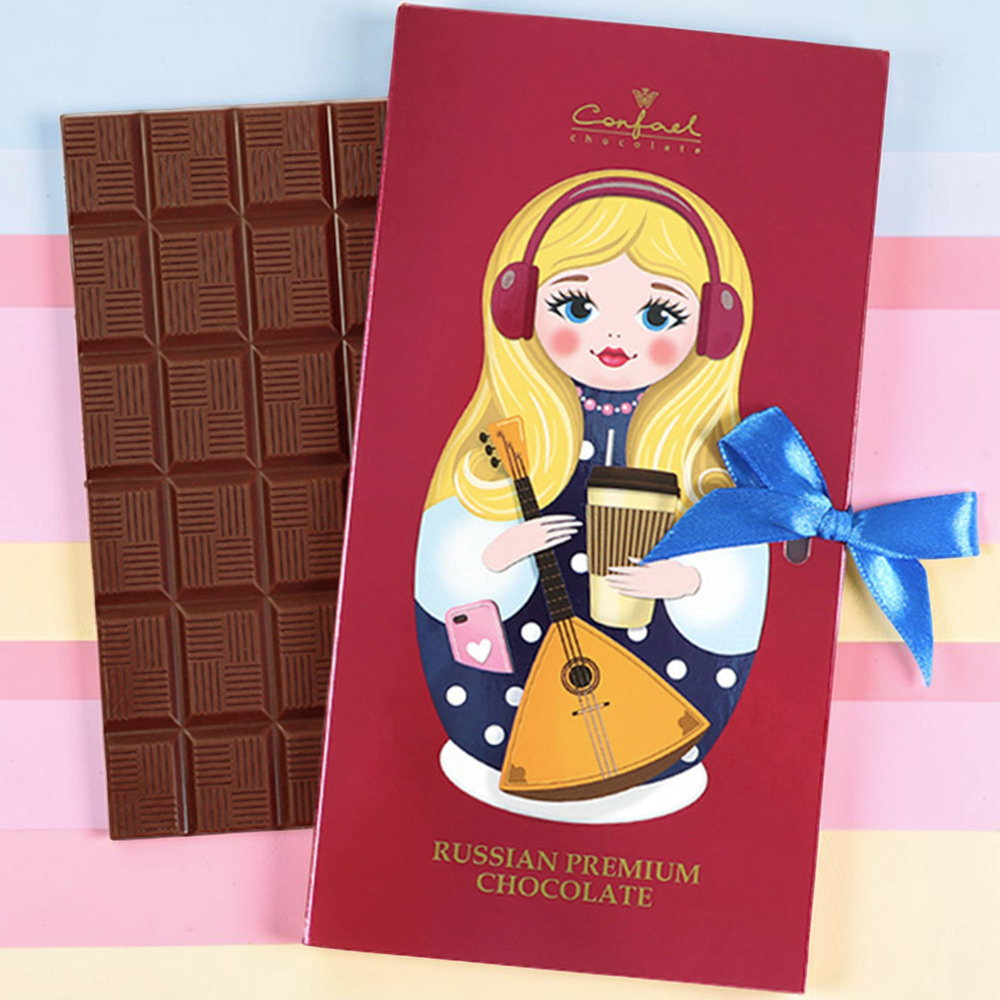"Русская красавица с балалайкой" открытка молочный шоколад