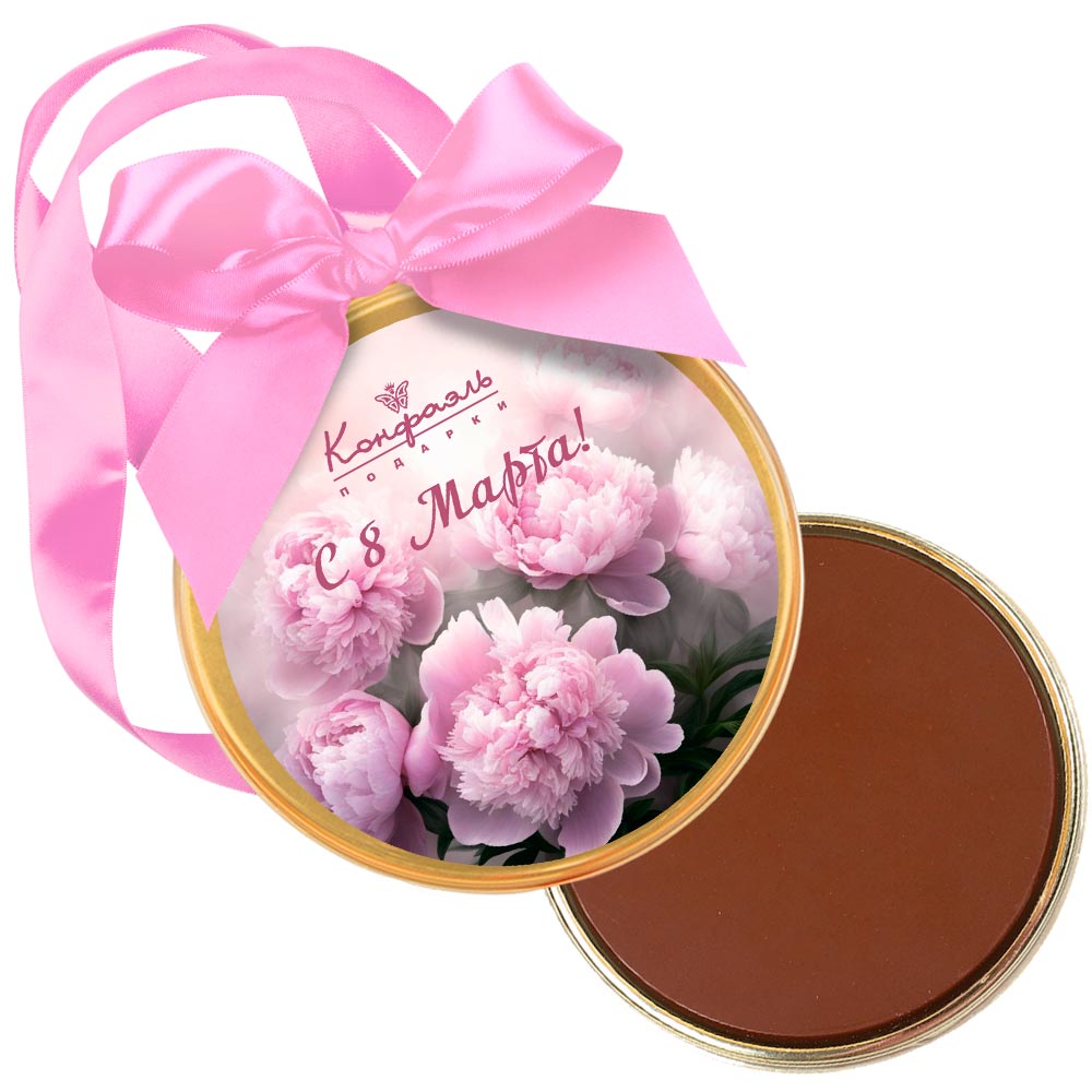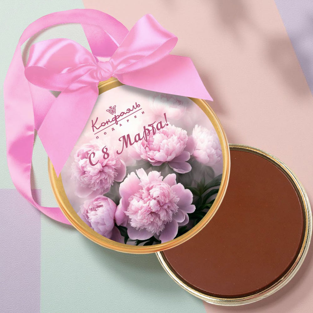 «С 8 марта» медаль молочный шоколад (пионы)