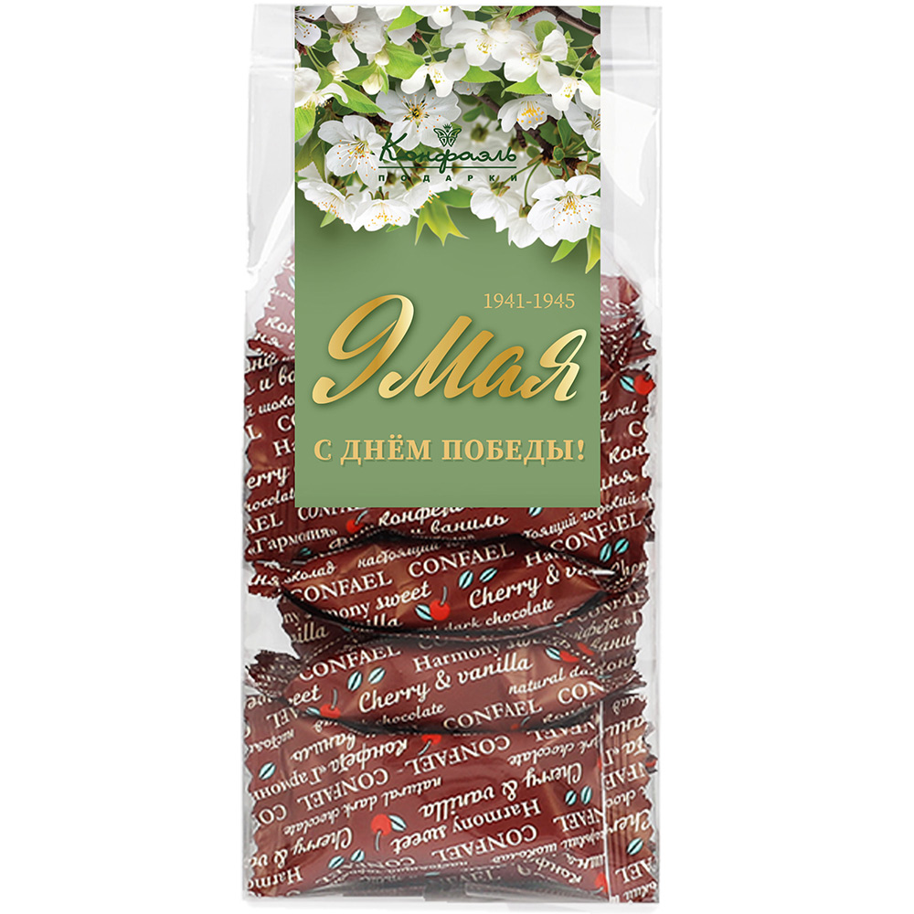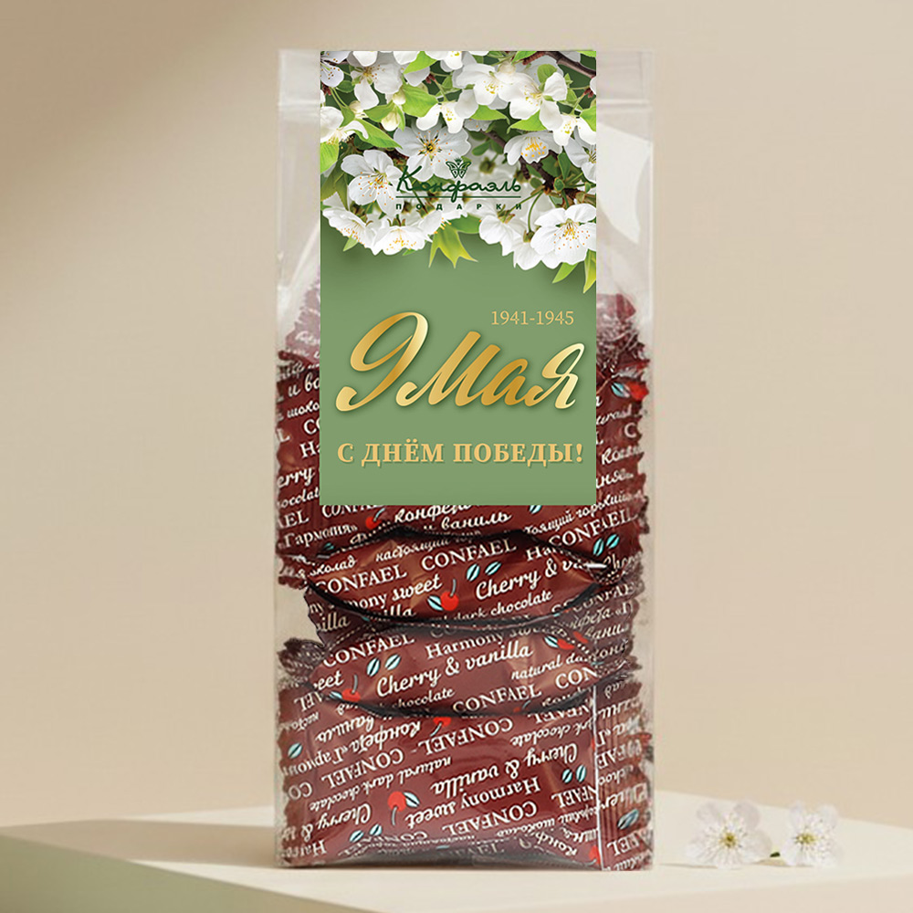 Почувствуйте особую атмосферу Дня Победы с изысканными конфетами из специальной серии «С Днём Победы». Нежное суфле с ванильными нотами и сочный мармелад с вишнёвым вкусом, покрытые благородной горчинкой тёмного шоколада, — это сочетание подарит незабываемые впечатления и сделает праздник ещё теплее.