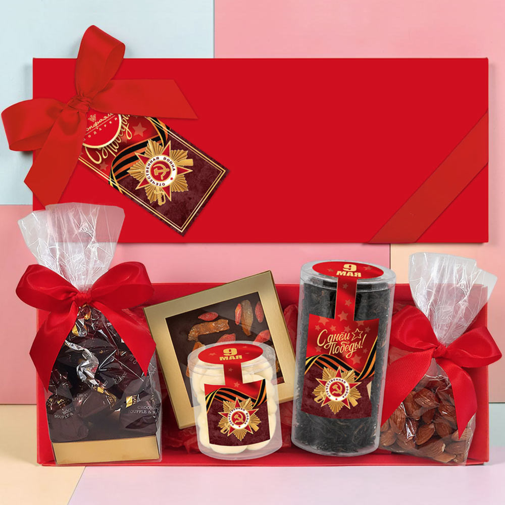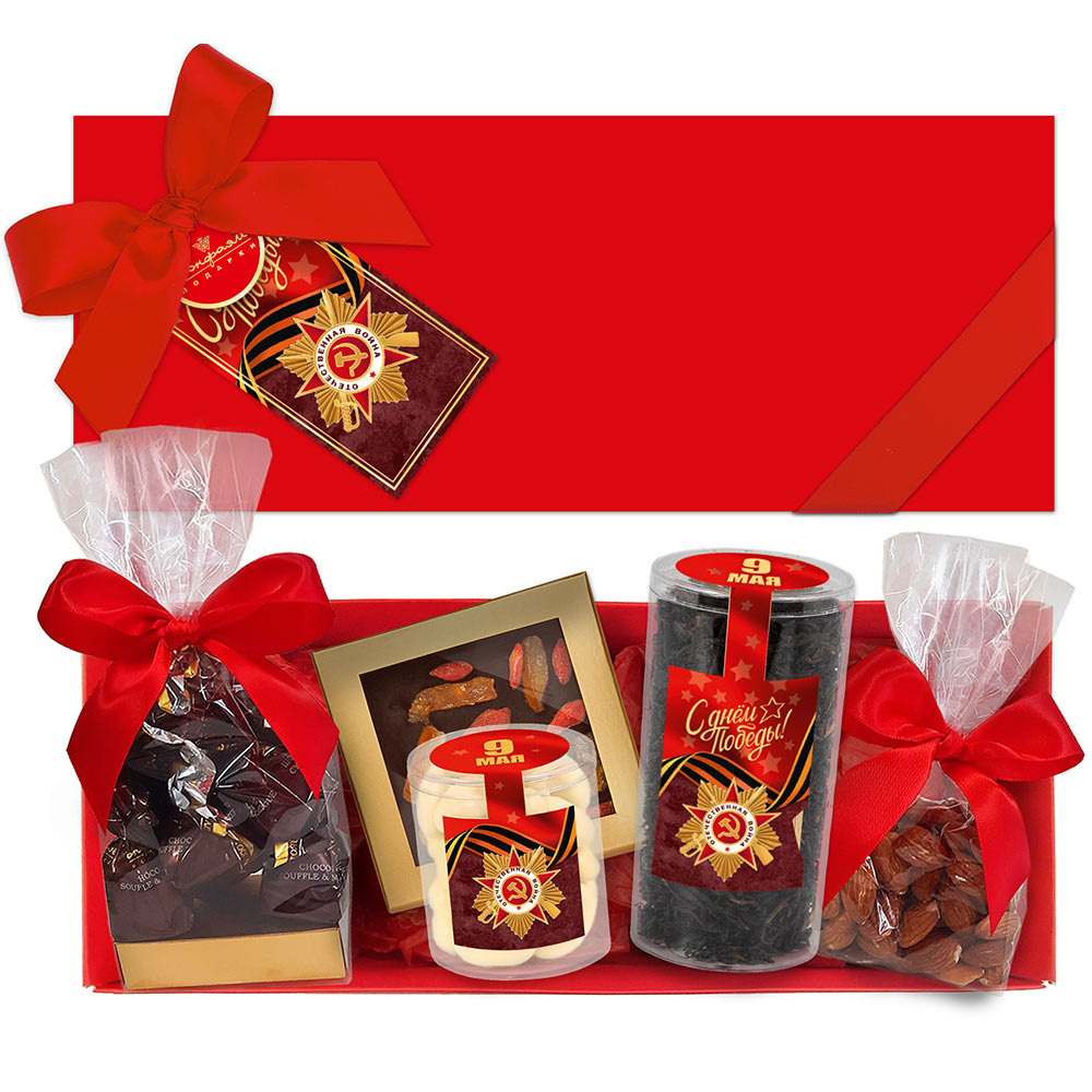 "С Днём Победы" подарочный набор: шоколад, чай, драже