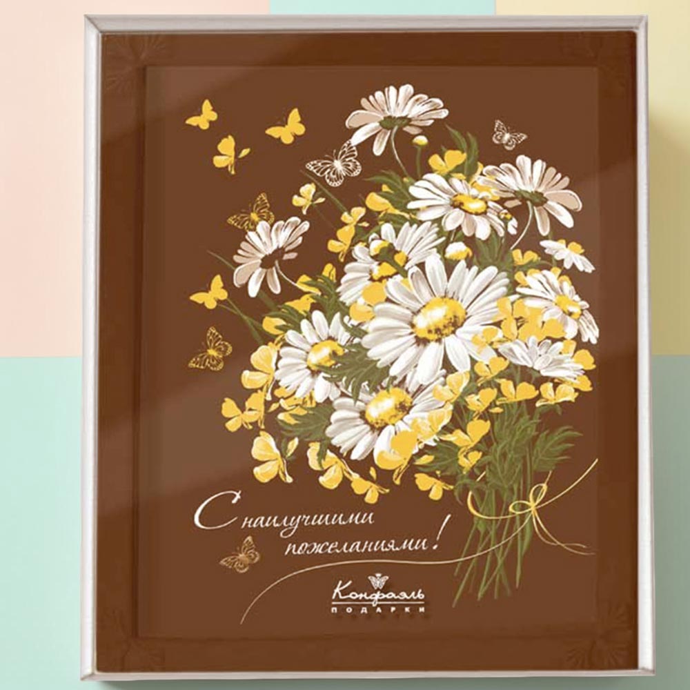 Яркая упаковка с лакомством, украшенным поэтичным букетом наивных ромашек, - радостный и необыкновенно милый подарок для тех, кого вы горячо любите и глубоко уважаете.