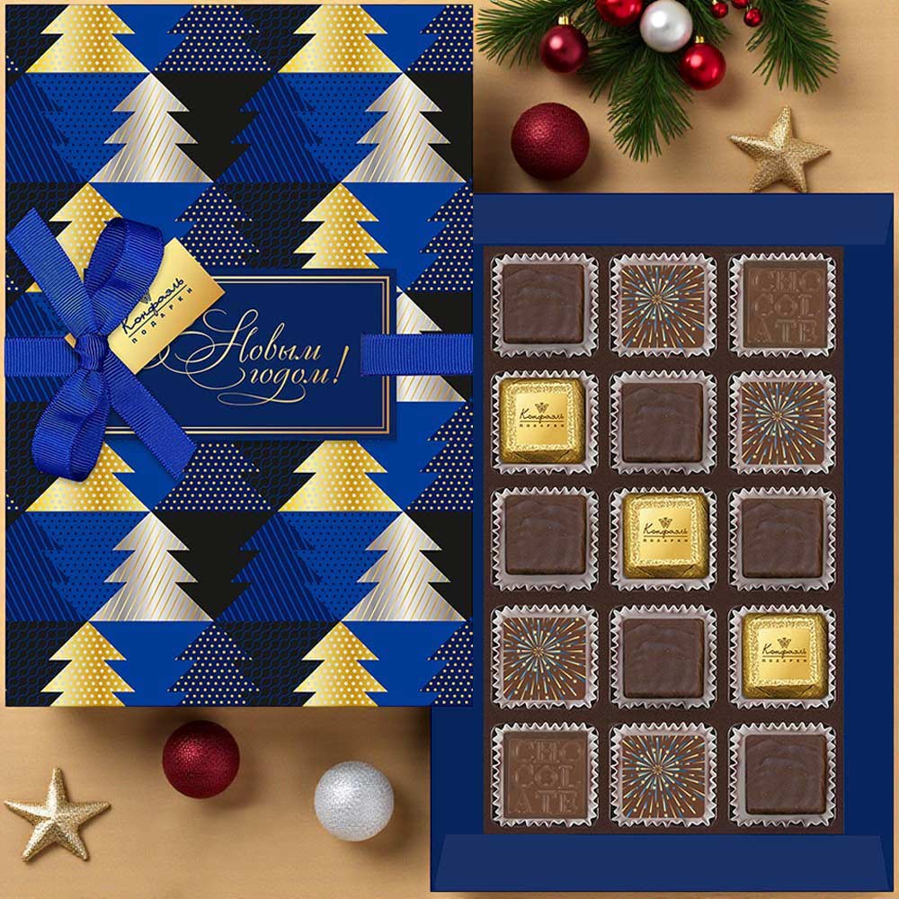 Состав: шоколадные массы – сахар, масло какао, молоко цельное сухое, какао тертое, какао-порошок, сыворотка молочная сухая, молочный жир, паста ореховая из ядер фундука, эмульгаторы (соевый лецитин,Е476), соль, ароматизаторы; начинки – сахар, патока, молоко сгущенное (молоко цельное, сахар (сахароза, лактоза)), масла растительные рафинированные дезодорированные (подсолнечное, рапсовое, оливковое; масло сладко-сливочное, молоко сухое обезжиренное), жир специального назначения (масло ши, рапсовое масло, соевое масло, антиокислитель( лимонная кислота)), молоко сухое цельное, молоко сухое обезжиренное, белый шоколад (сахар, масло какао, сухое обезжиренное молоко, сухое цельное молоко, эмульгатор (лецитин соевый), экстракт ванили), вафельная крошка( мука пшеничная х/п первого сорта, сахар, масло кокосовое рафинированное дезодорированное, эмульгатор( лецитин соевый), пшеничные волокна (клетчатка), ароматизатор), стабилизатор (мальтодекстрин), коньяк (дистиллят коньячный, вода, сахар, пищевой краситель (сахарный колер)), консервант (сорбиновая кислота), регулятор кислотности (лимонная кислота), эмульгаторы (лецитин соевый, Е471), ароматизаторы, пищевые красители (сахарный колер, медные комплексы хлорофиллов и хлорофиллинов).