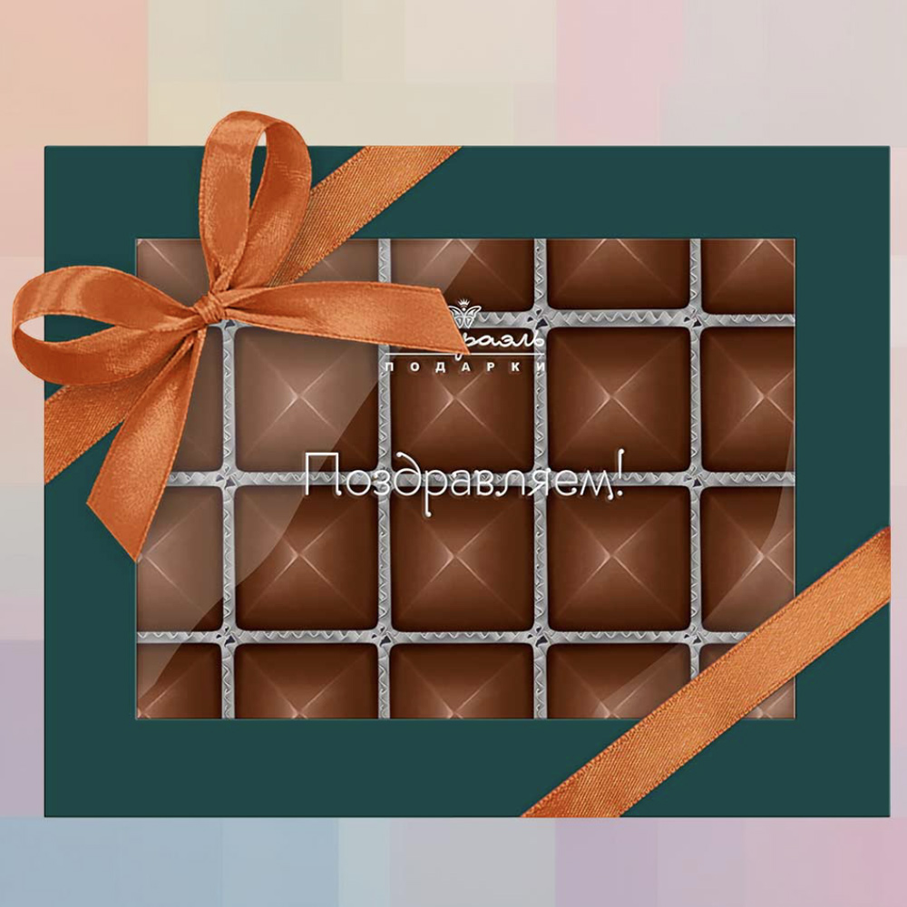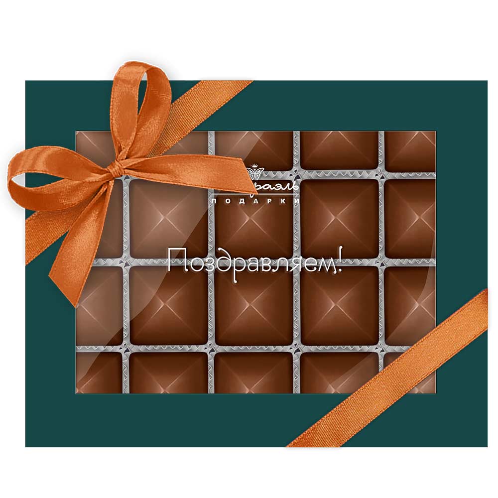 Состав: шоколадные массы – сахар, масло какао, сыворотка молочная сухая, тертое какао, пахта сухая, эмульгатор (лецитин соевый); начинки – сахар, патока, какао-масло, какао тертое, молоко сгущенное (молоко цельное, сахар (сахароза, лактоза)), молоко сухое, масла растительные рафинированные дезодорированные (подсолнечное, рапсовое, оливковое; масло сливочное (из пастеризованных коровьих сливок), молоко сухое обезжиренное), стабилизатор (мальтодекстрин), консервант (сорбиновая кислота), регулятор кислотности (лимонная кислота), ароматизатор. Продукция производится на предприятии, где используются арахис, кунжут, орехи, яичные и молочные продукты, злаки, содержащие глютен.