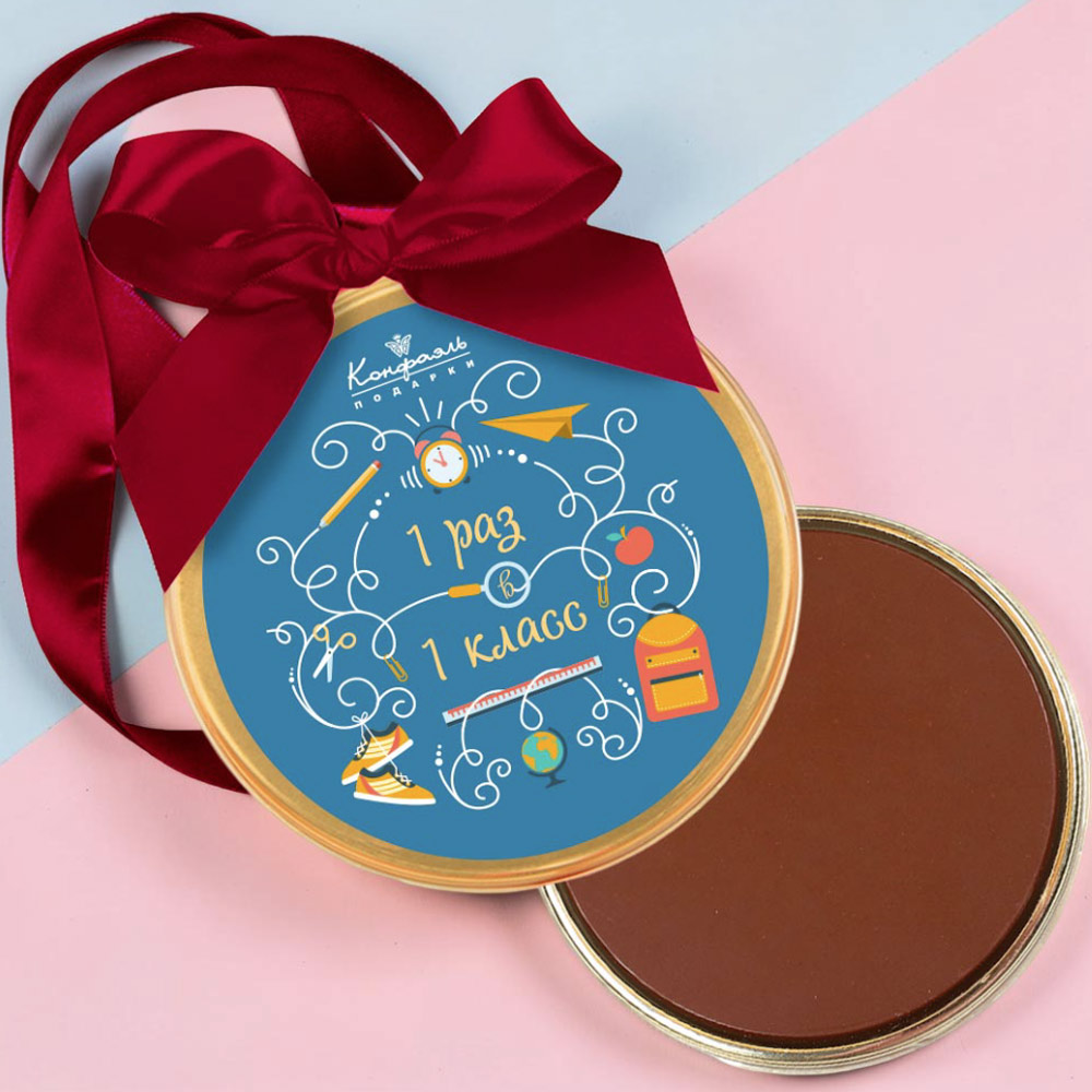 "1 раз в 1 класс" медаль молочный шоколад