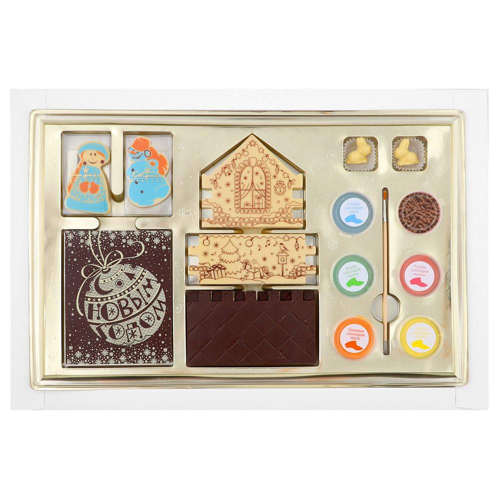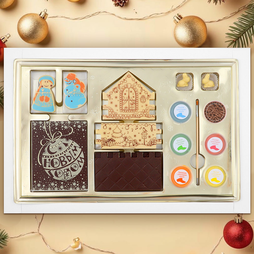 Его можно раскрасить шоколадными красками и поставить под новогоднюю елочку, а затем полакомиться изысканным вкусом шоколада.