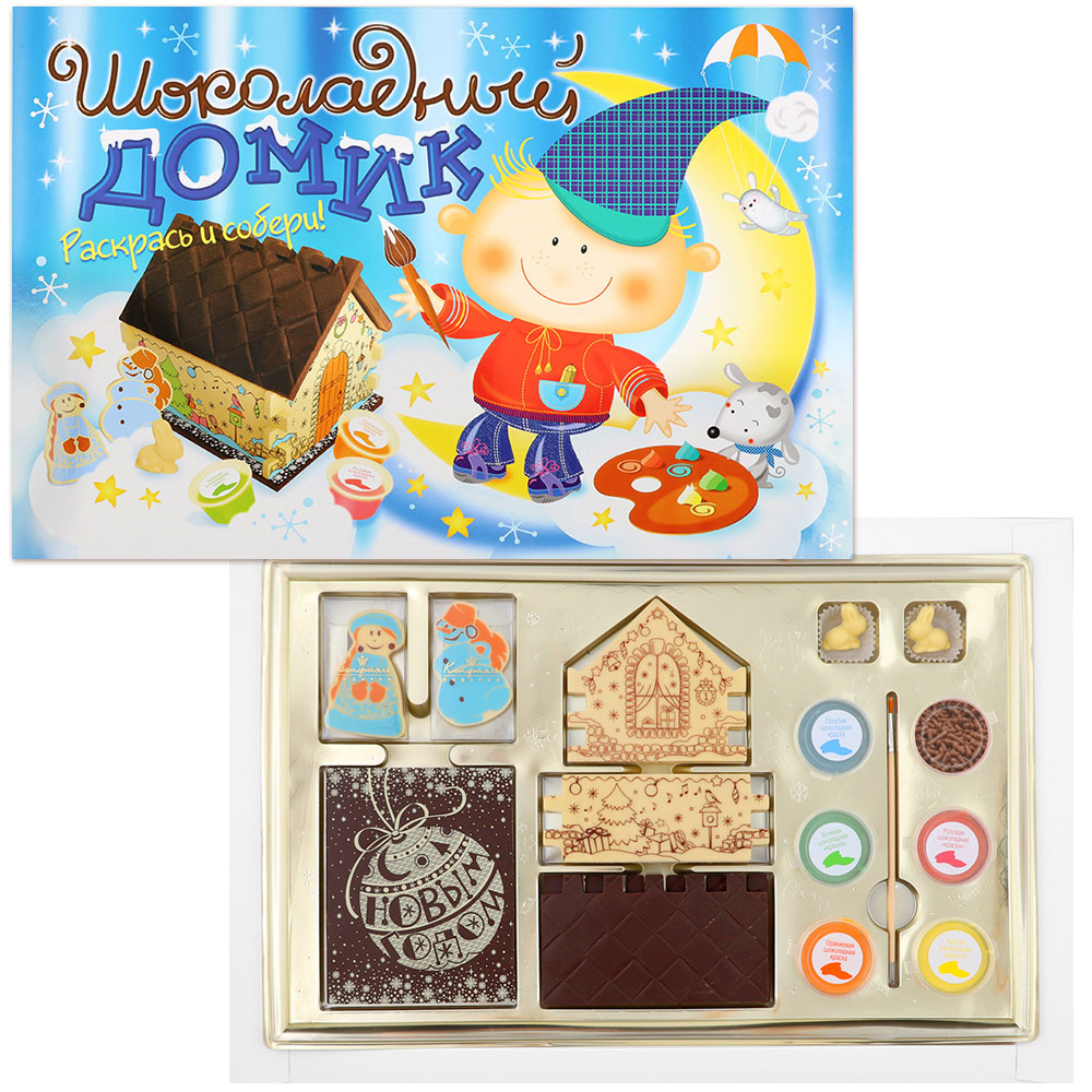 Домик - пластины из молочного и белого шоколада c декором.