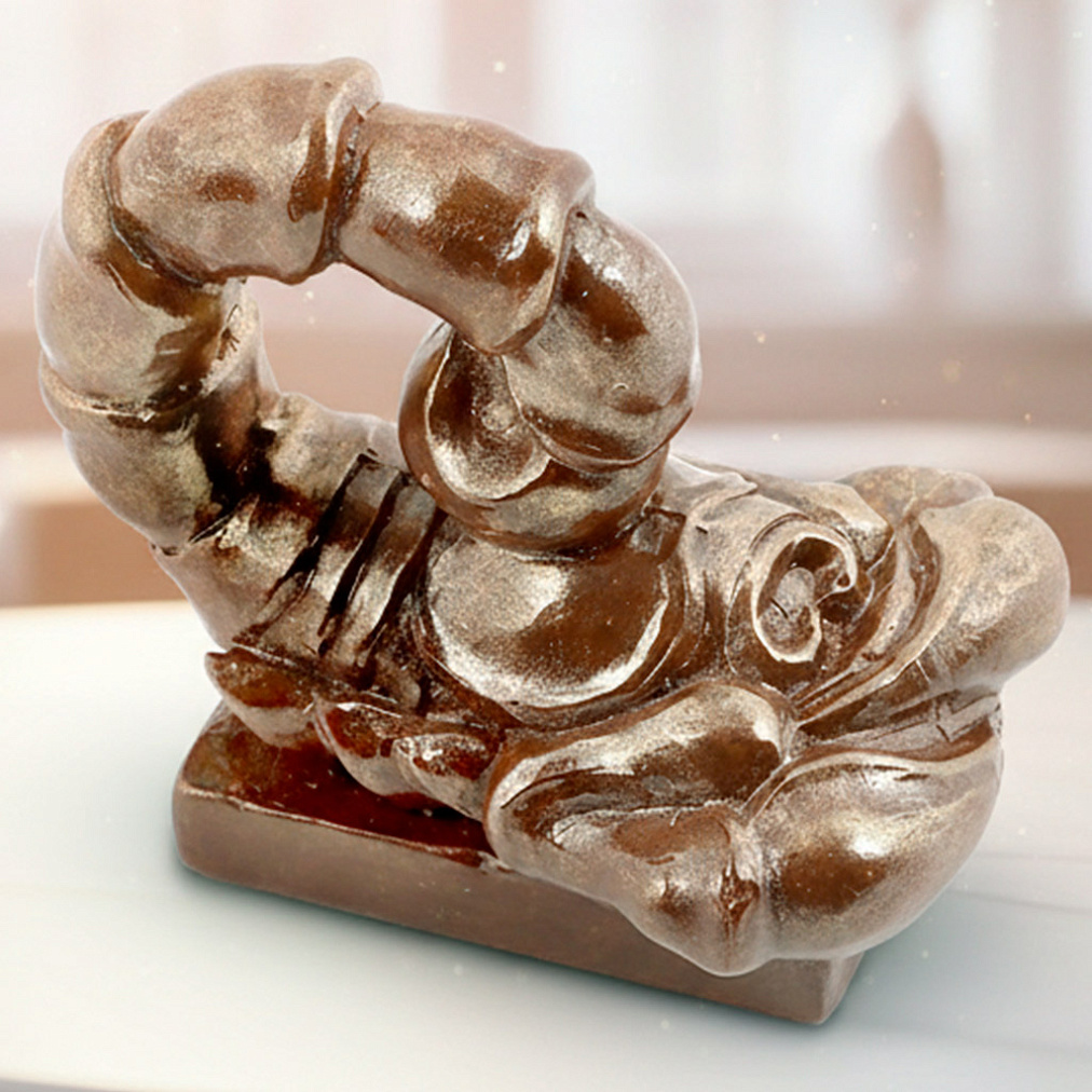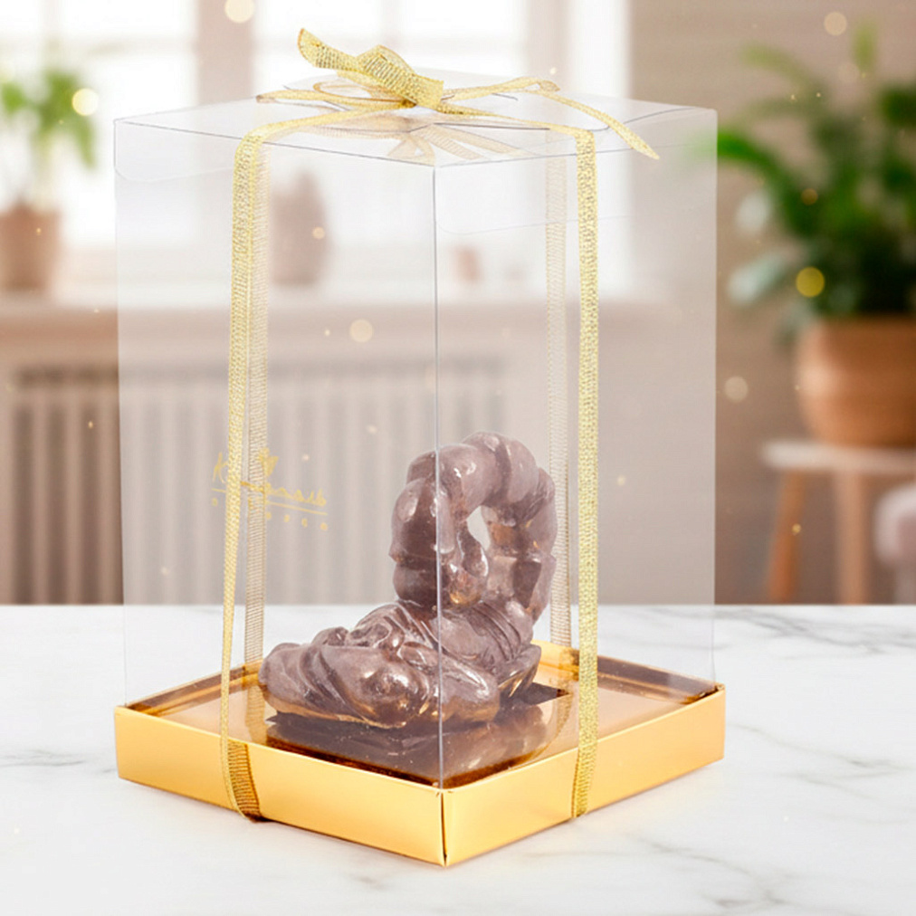 Скульптура из молочного шоколада «Скорпион» в дизайнерской упаковке креативно выглядит и отличается дивным вкусом.