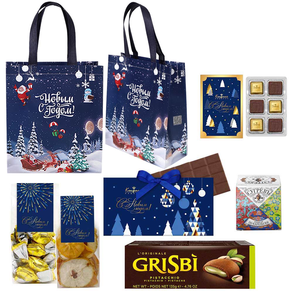 Сумка-шоппер "С Новым годом" с конфетами и шоколадом 515г