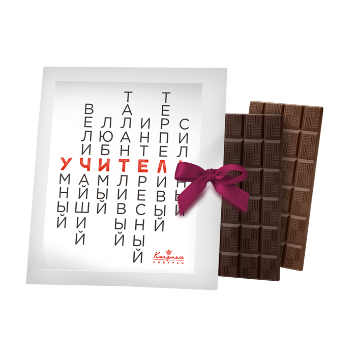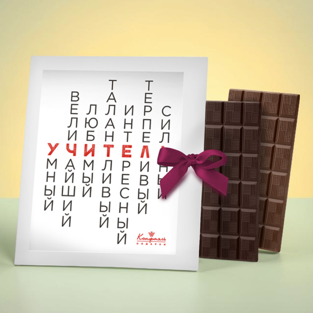 Все лучшие слова о любимом учителе, таящиеся в сердечках девчонок и мальчишек, скажет вместо них эффектная открытка из шоколада в упаковке с авторским дизайном.