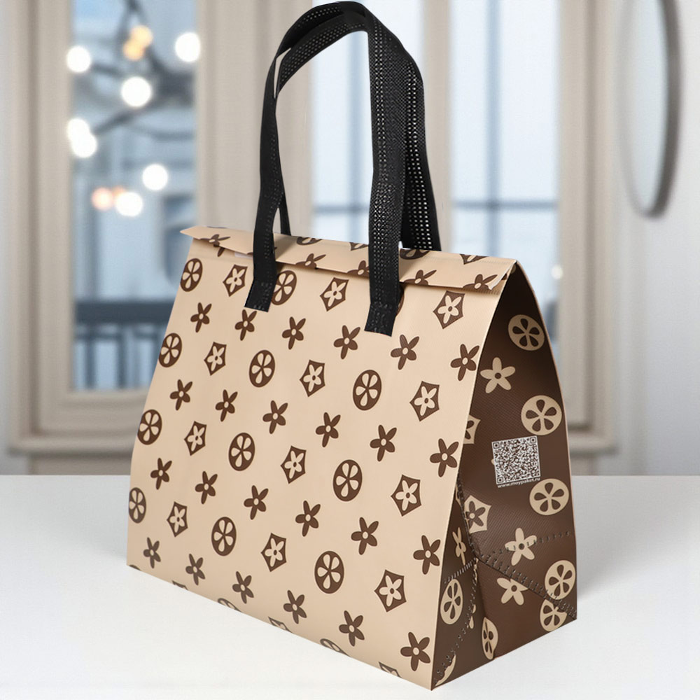 Сумка из ламинированного нетканого материала с фольгированным слоем(3-х слойная) застежка-липучка многоразовая, ручки 50 см