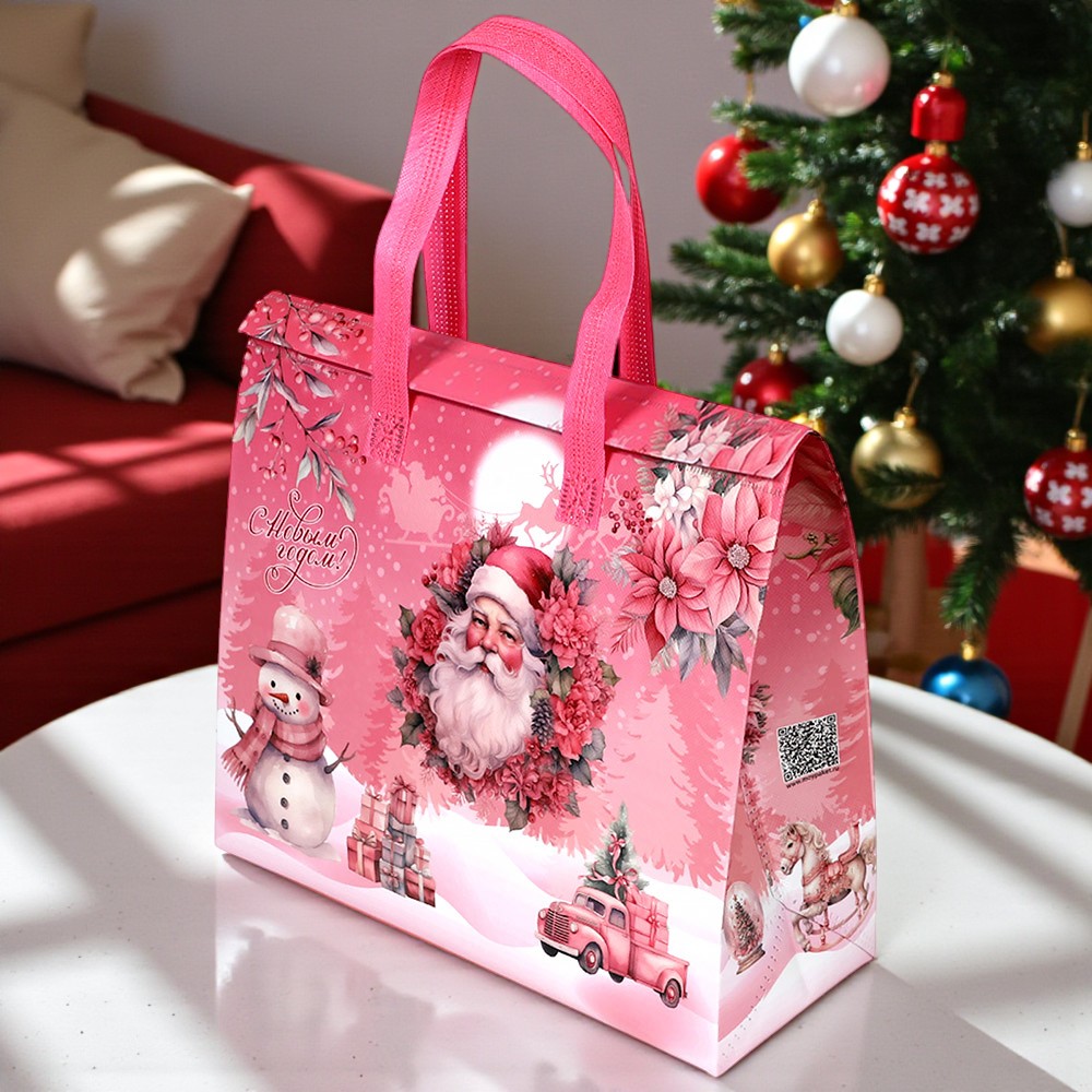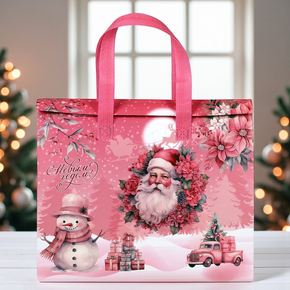 Термопакет розовый "С Новым годом" 35х30х13 см (застежка липучка многоразовая)