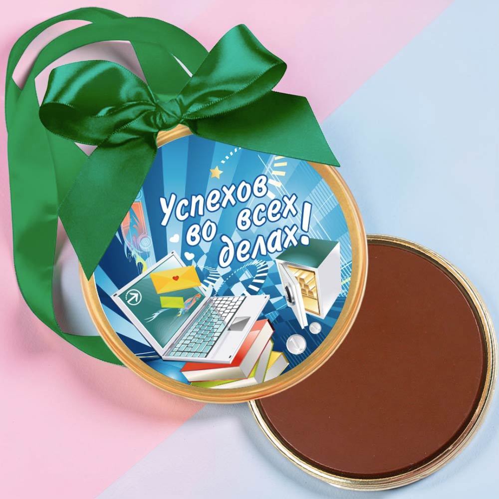 "Успехов во всех делах" медаль молочный шоколад