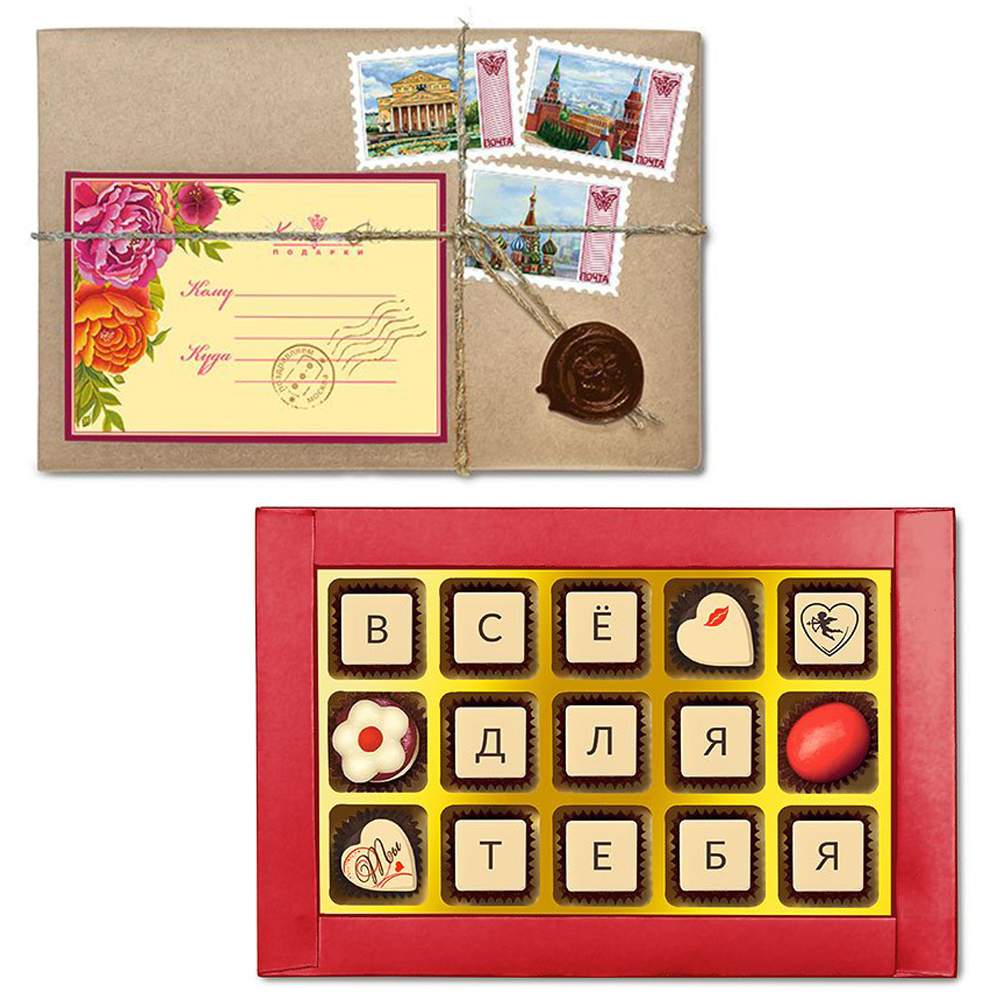 Шокотелеграмма "Все для тебя" спрятала в себе не только светлую романтику, но и вкуснейшие конфеты со сливочной начинкой, драже и мармелад.