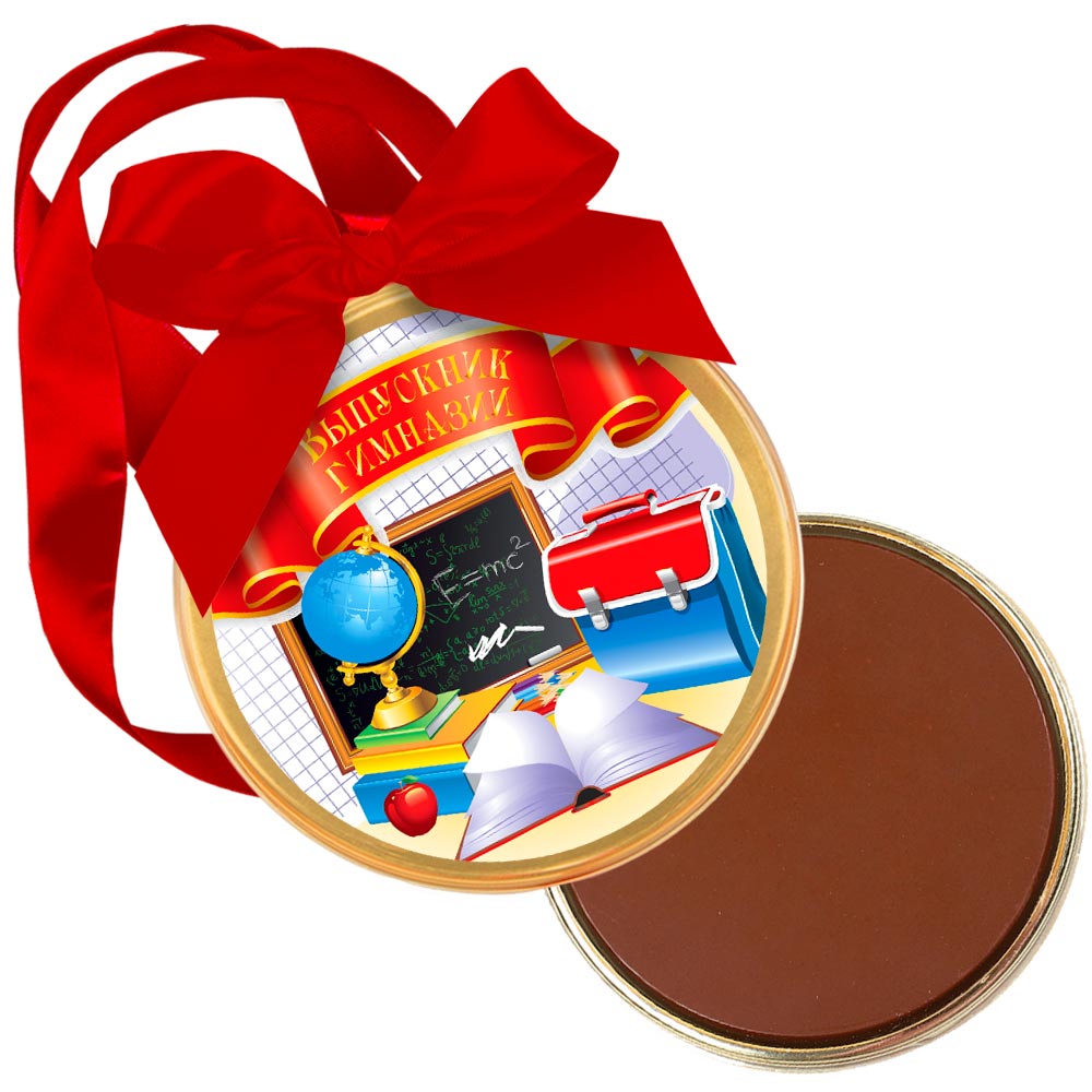 Сверкающая медаль "Выпускник гимназии", изготовленная из шоколада, подчеркнёт важность события - окончания гимназии - и подсластит горечь расставания с прошлым.